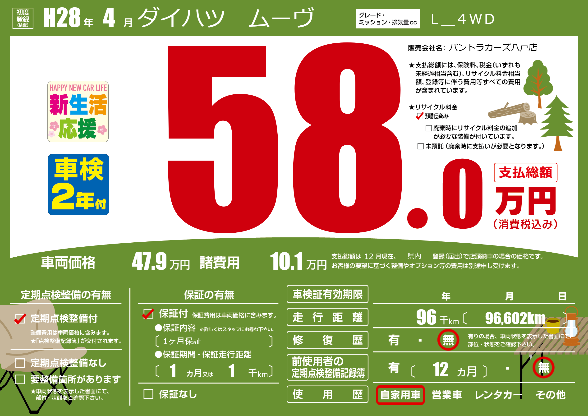 | 定期点検整備 | 定期点検整備あり | ||