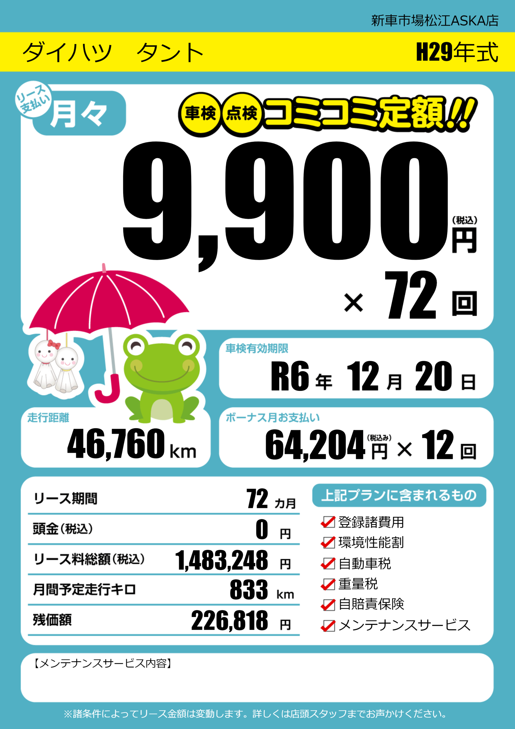 なし | 車検制限 | R6年12月20月 |