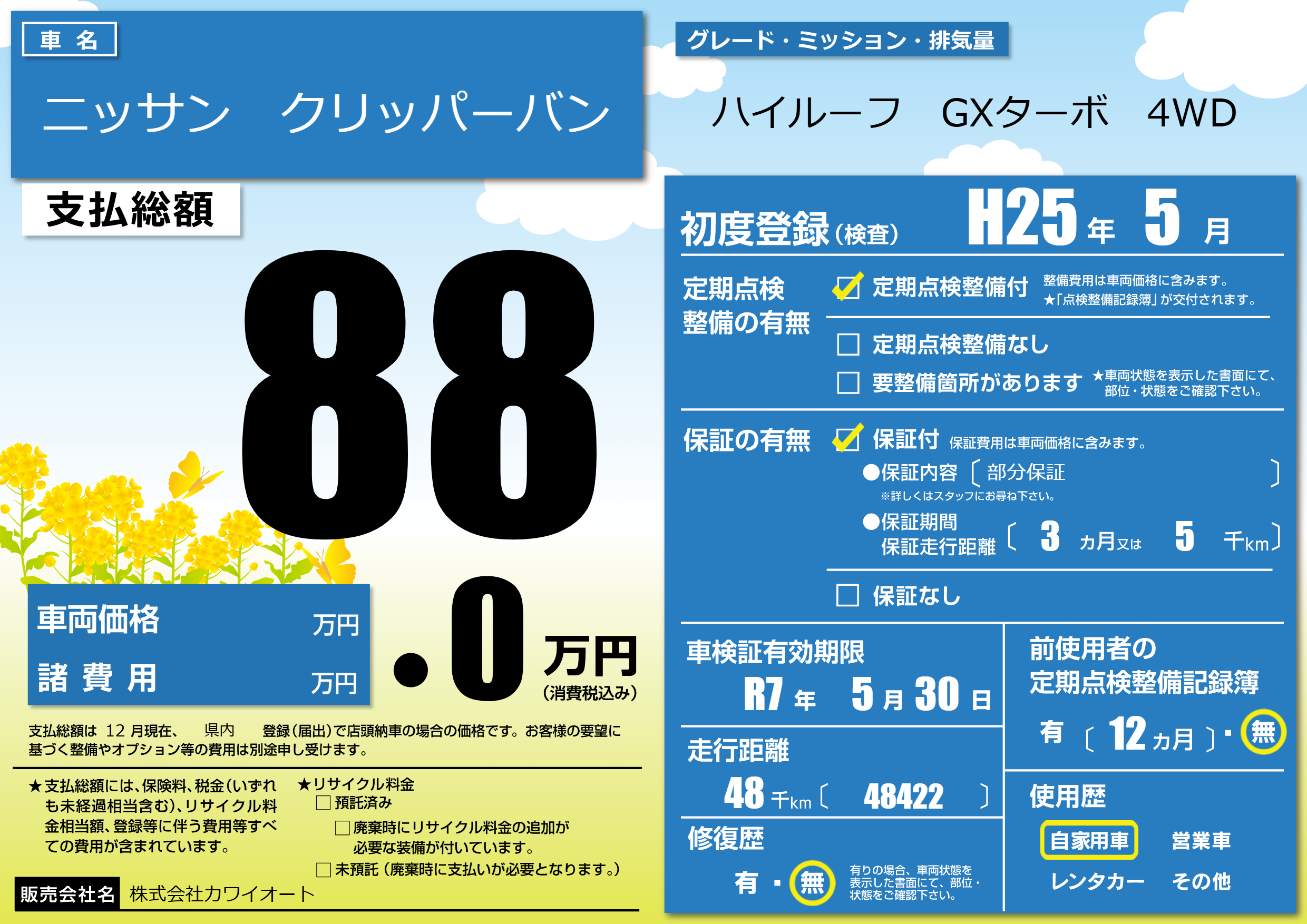 なし | 車検制限 | R7年5月30月 |