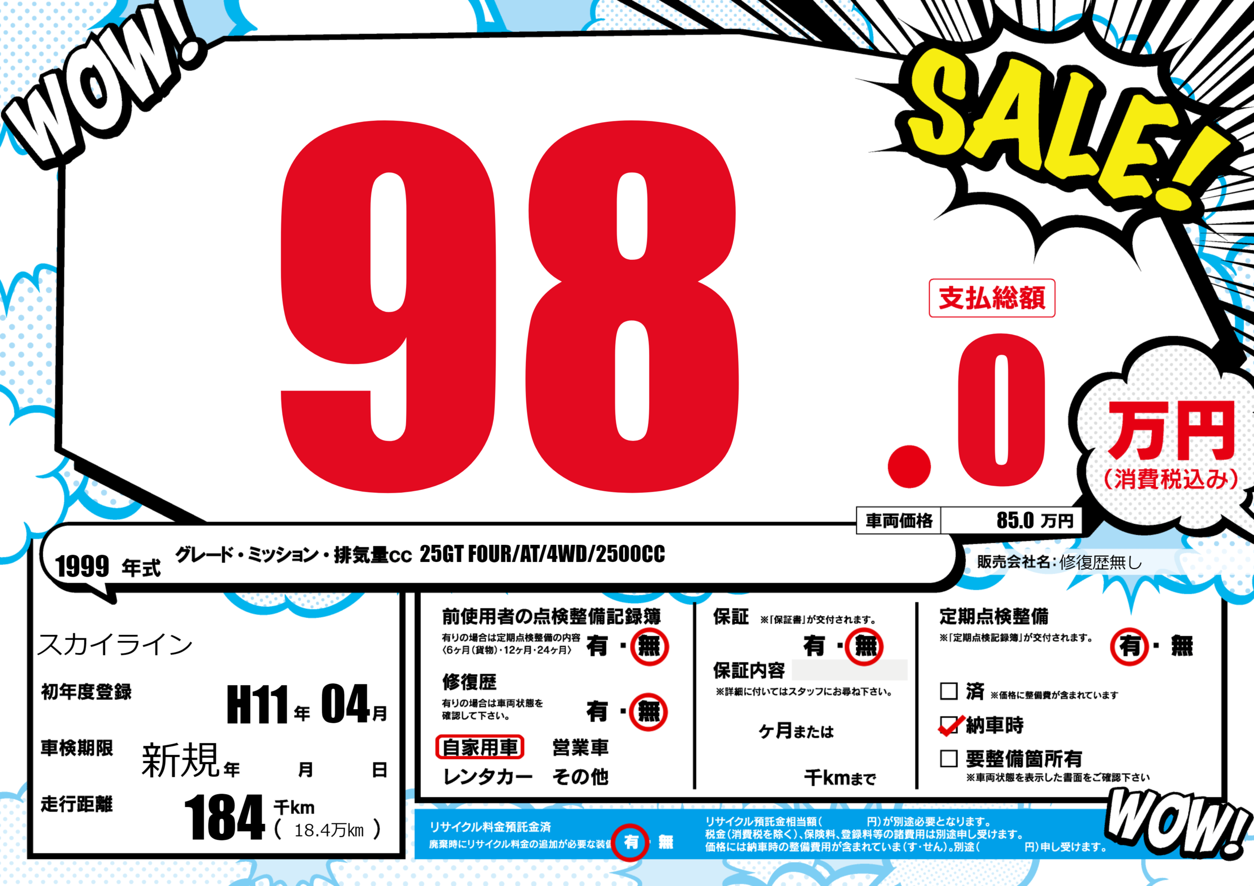 | 車検制限 | 新規年 - 月 - 日 | ||