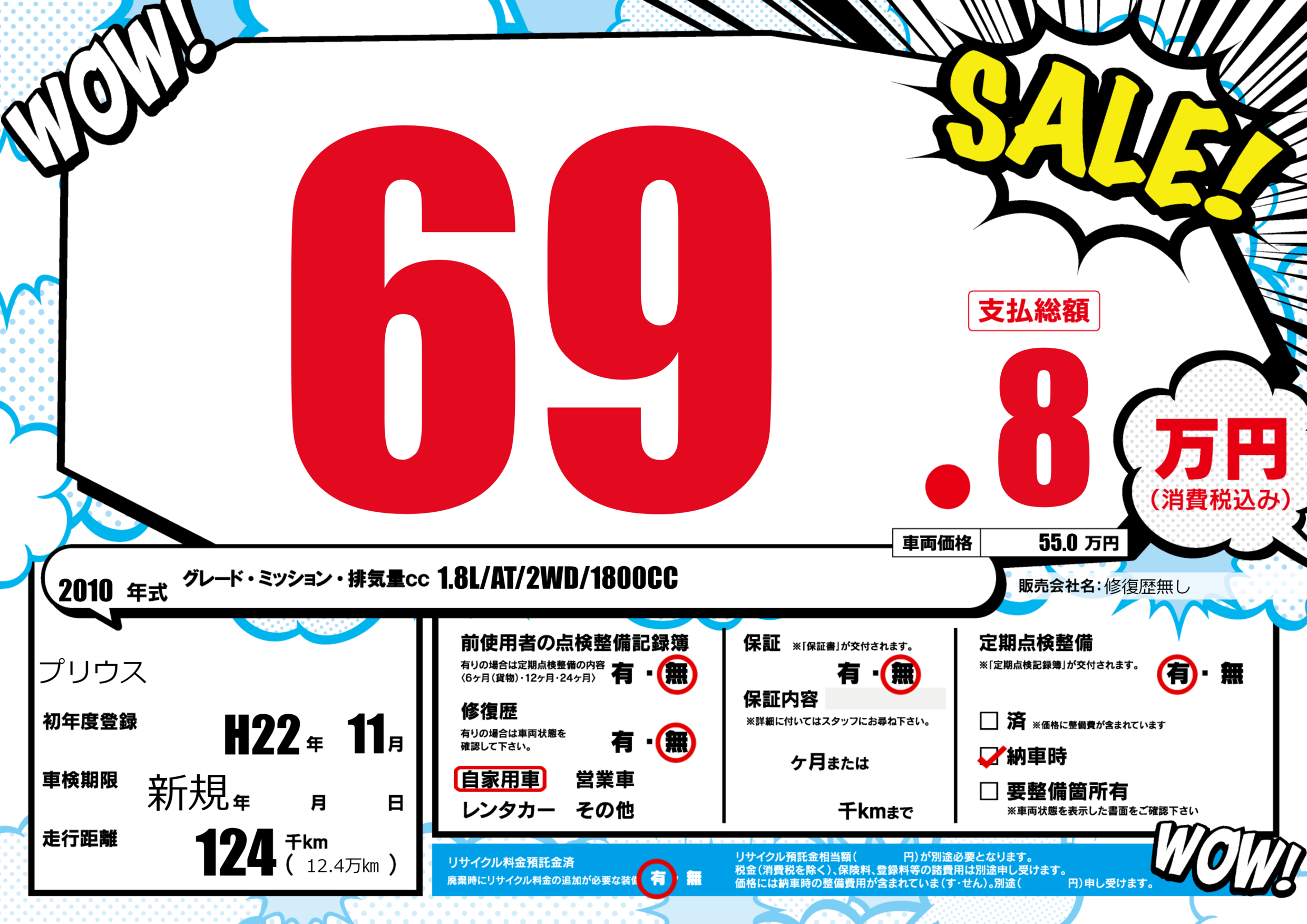 | 定期点検整備 | 定期点検整備あり 納車時あり | ||