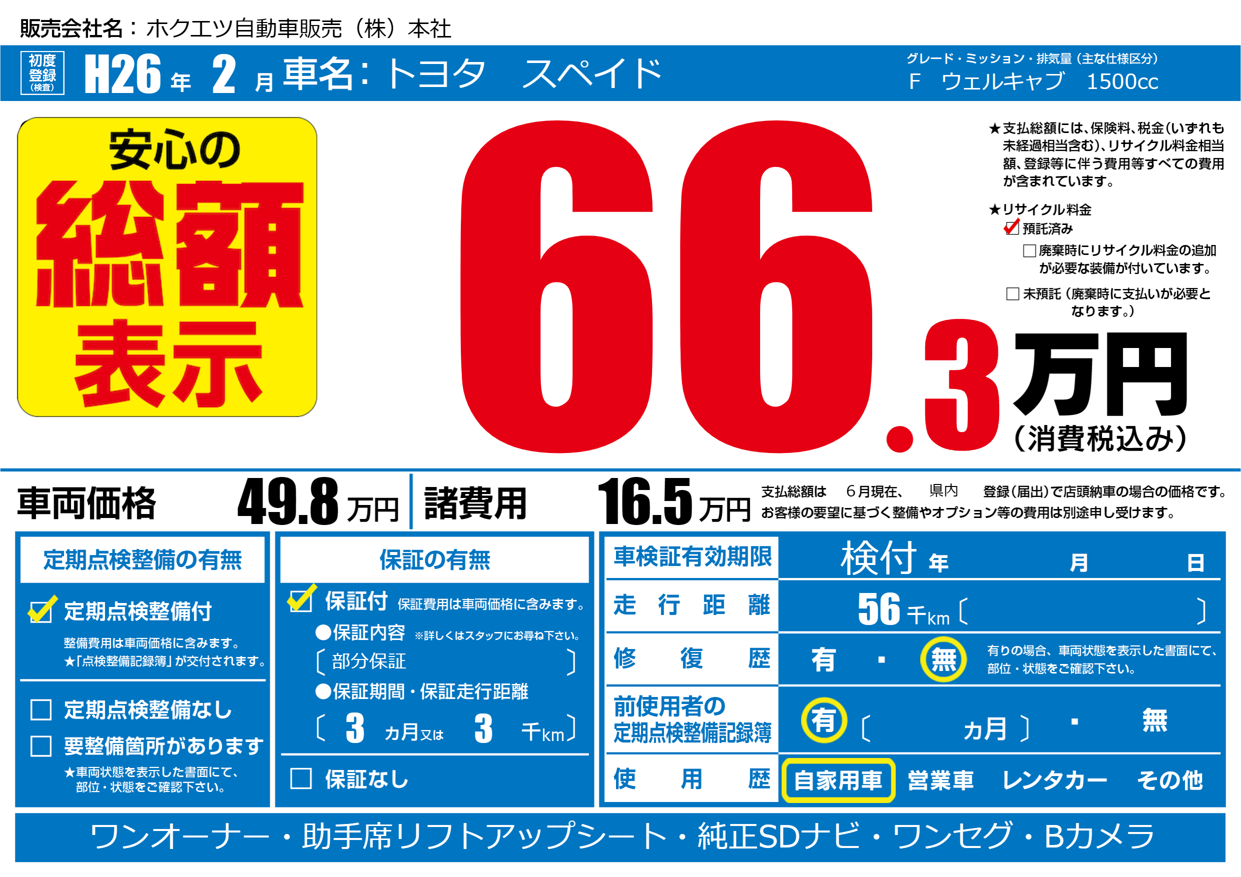 | 定期点検整備 | 定期点検整備あり | ||