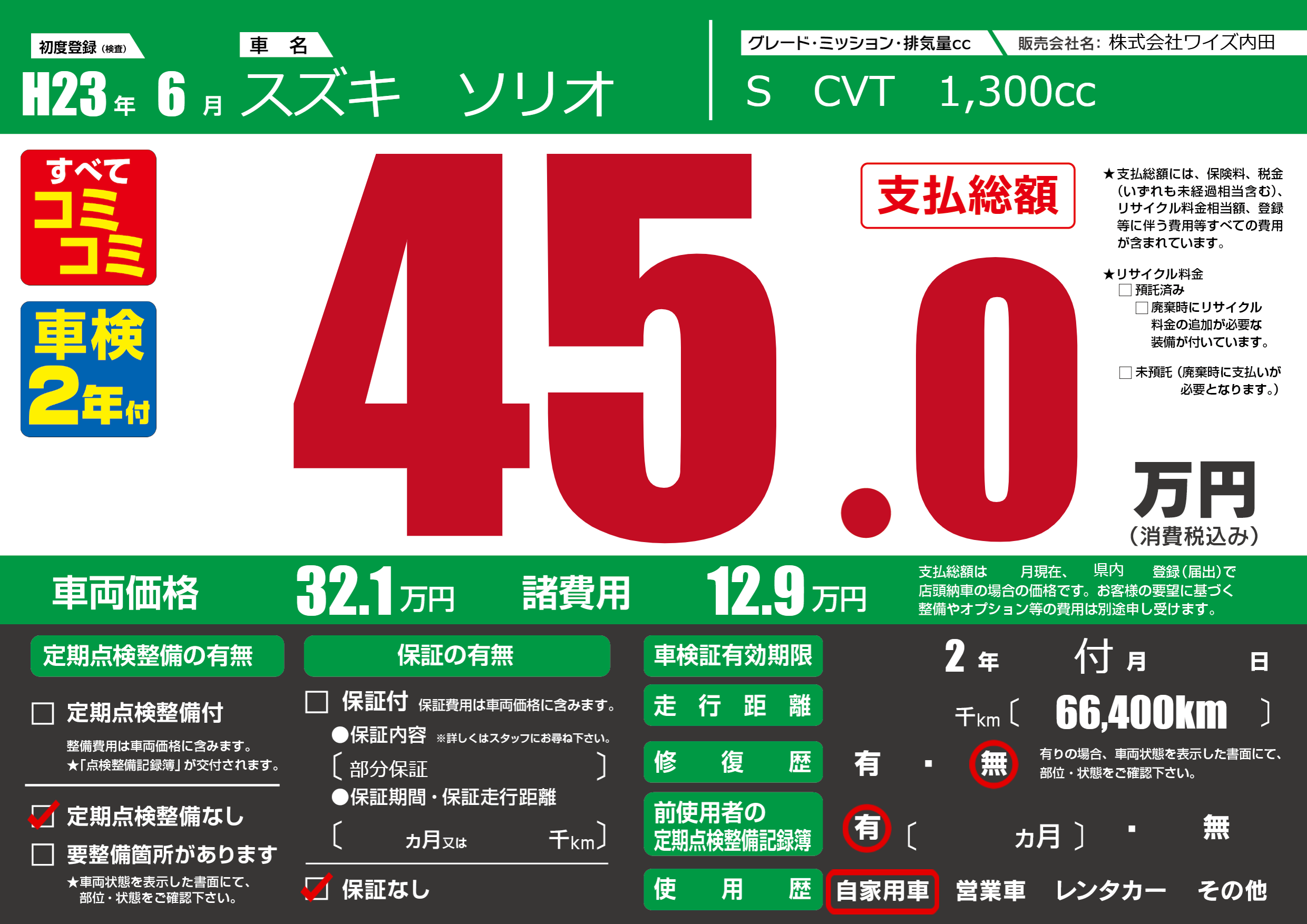 なし | 車検制限 | 2年付月---月 |