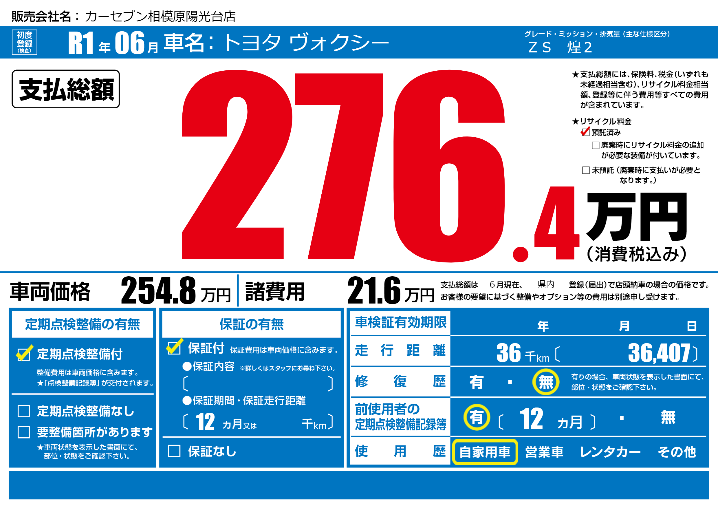 | 車名 | トヨタ ヴォクシー | グレード ミッション 排気量 |