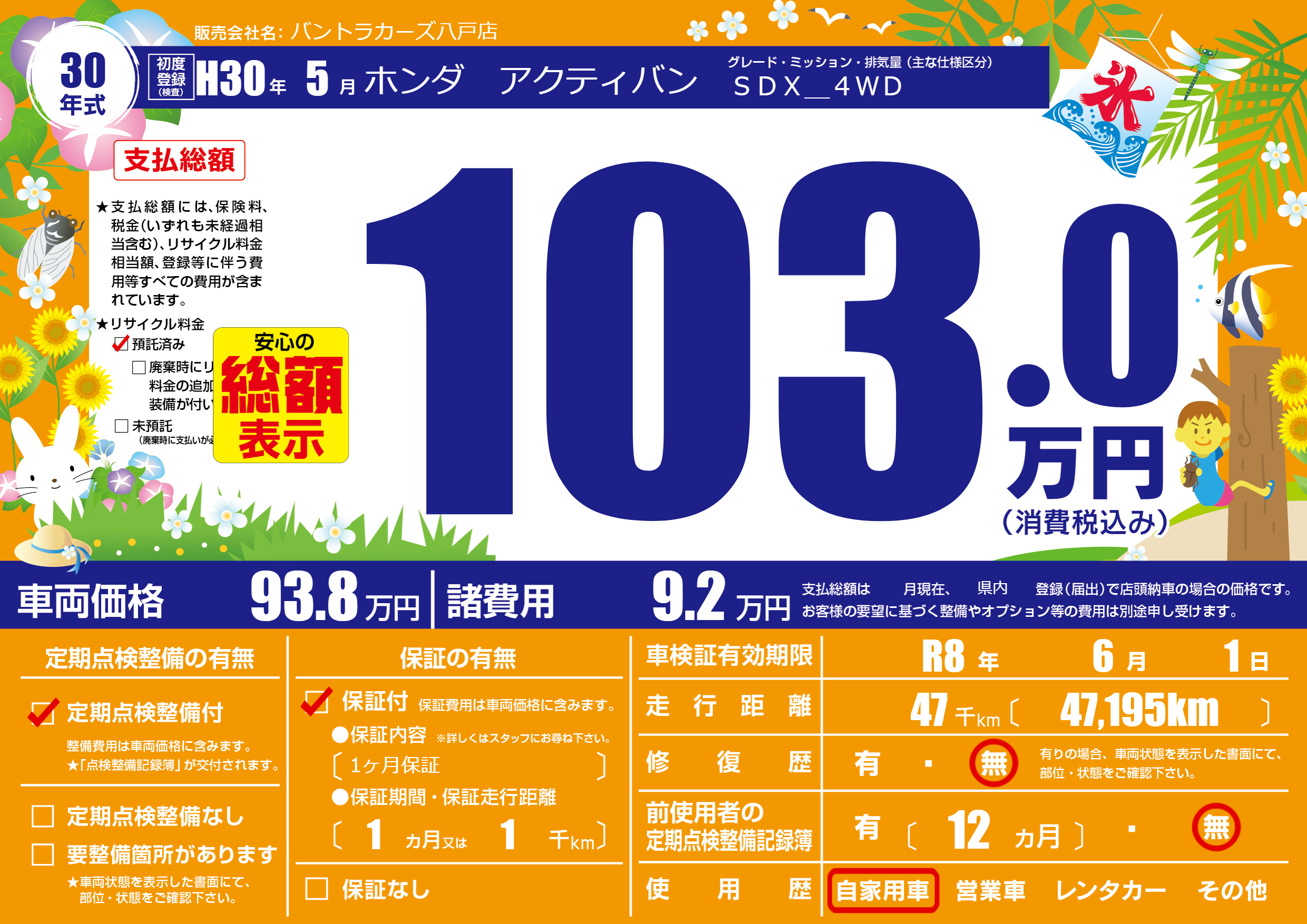 なし | 車検制限 | R8年6月1月 |