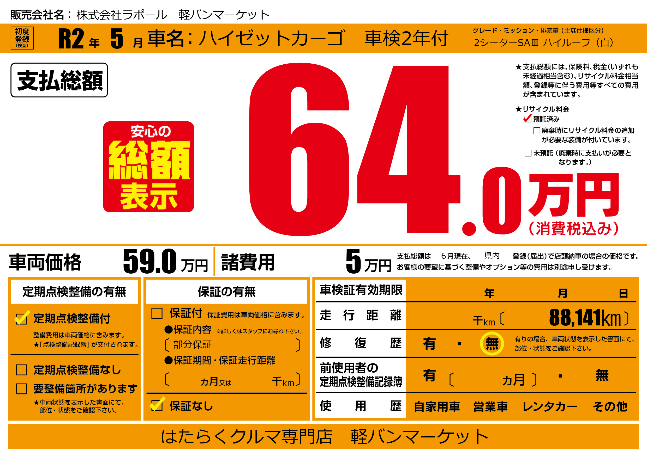 ハイゼットカーゴ 車検2年付