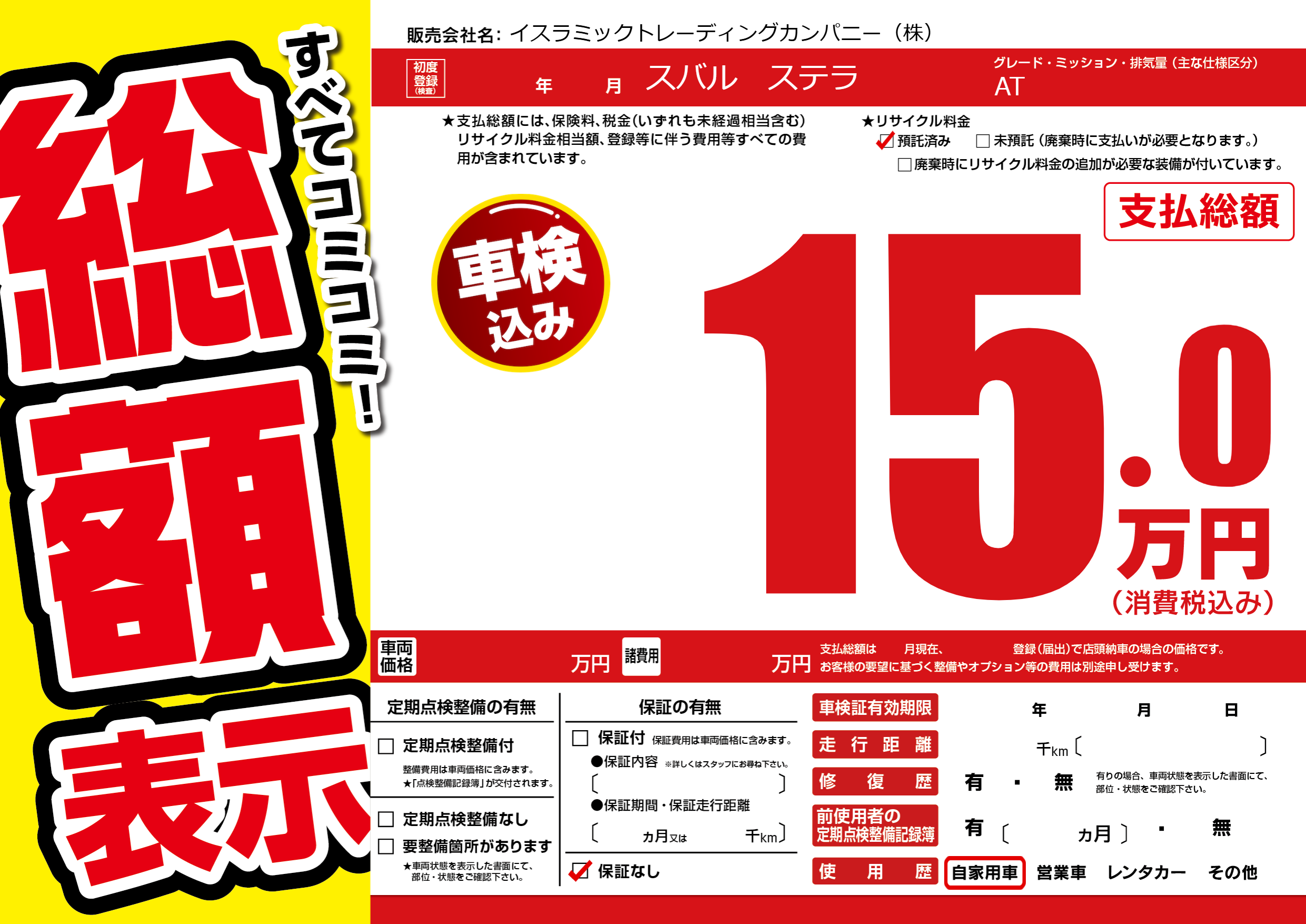 | 車名 | スバル ステラ | グレード ミッション 排気量 |