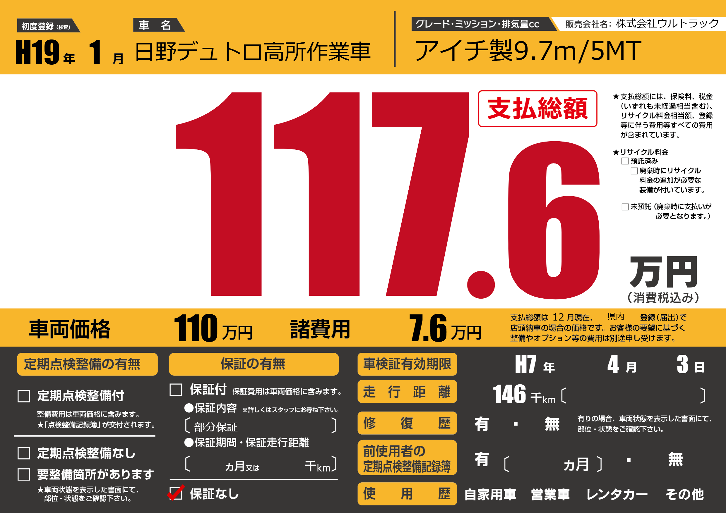 なし | 車検制限 | H7年4月3月 |