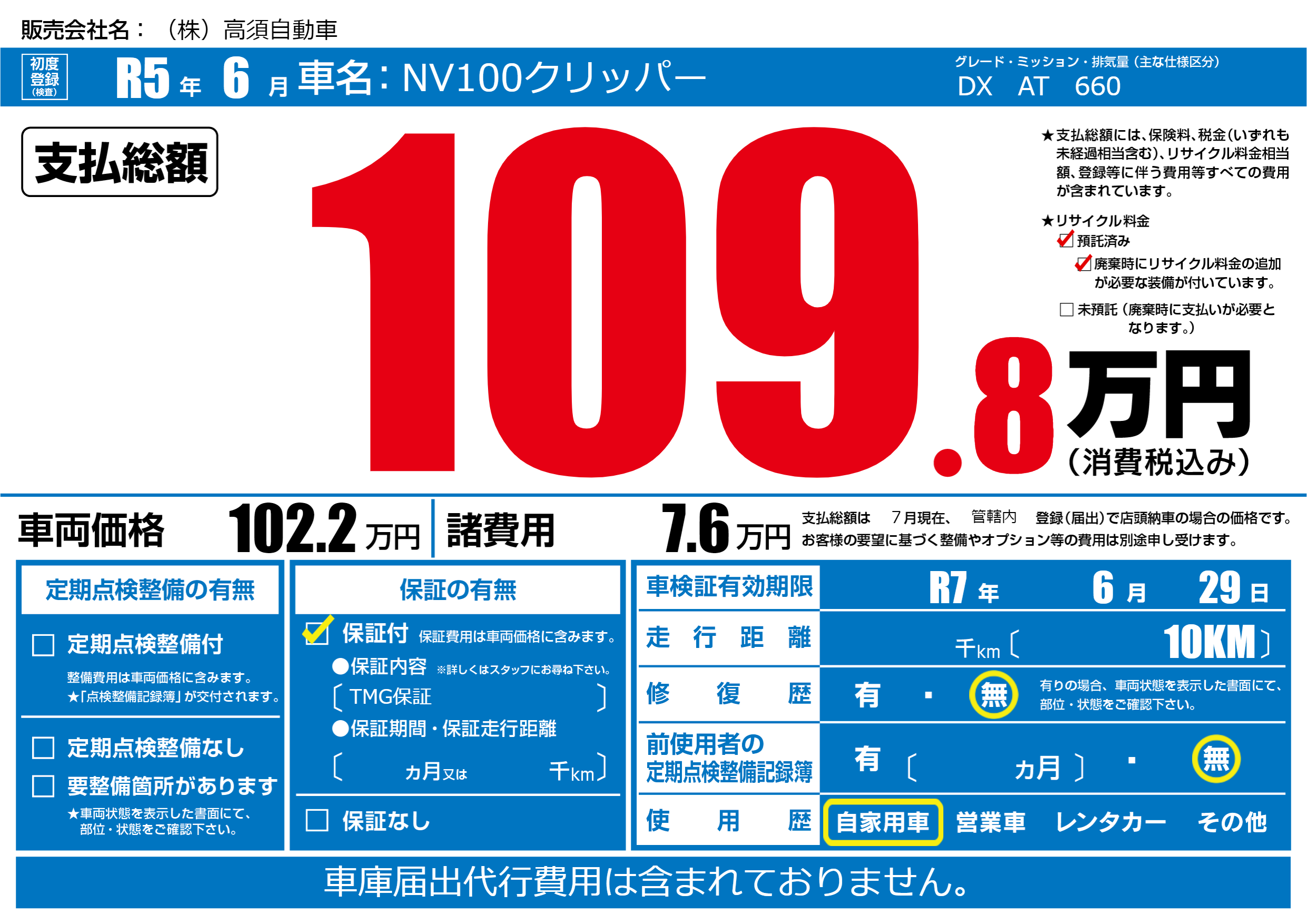 | 車名 | NV100クリッパー | グレード ミッション 排気量 |