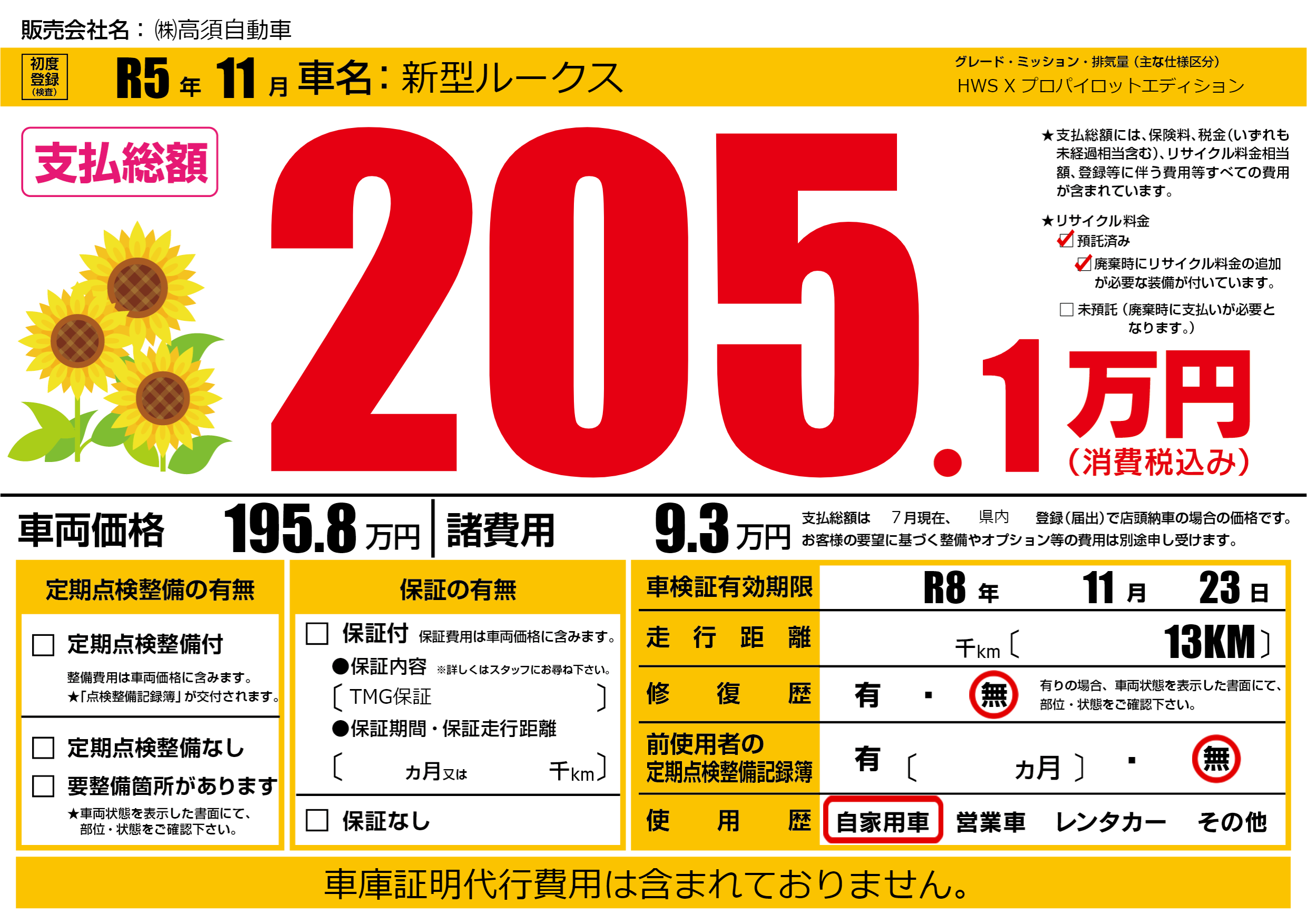 | 車検制限 | R8年 11月 23日 | ||