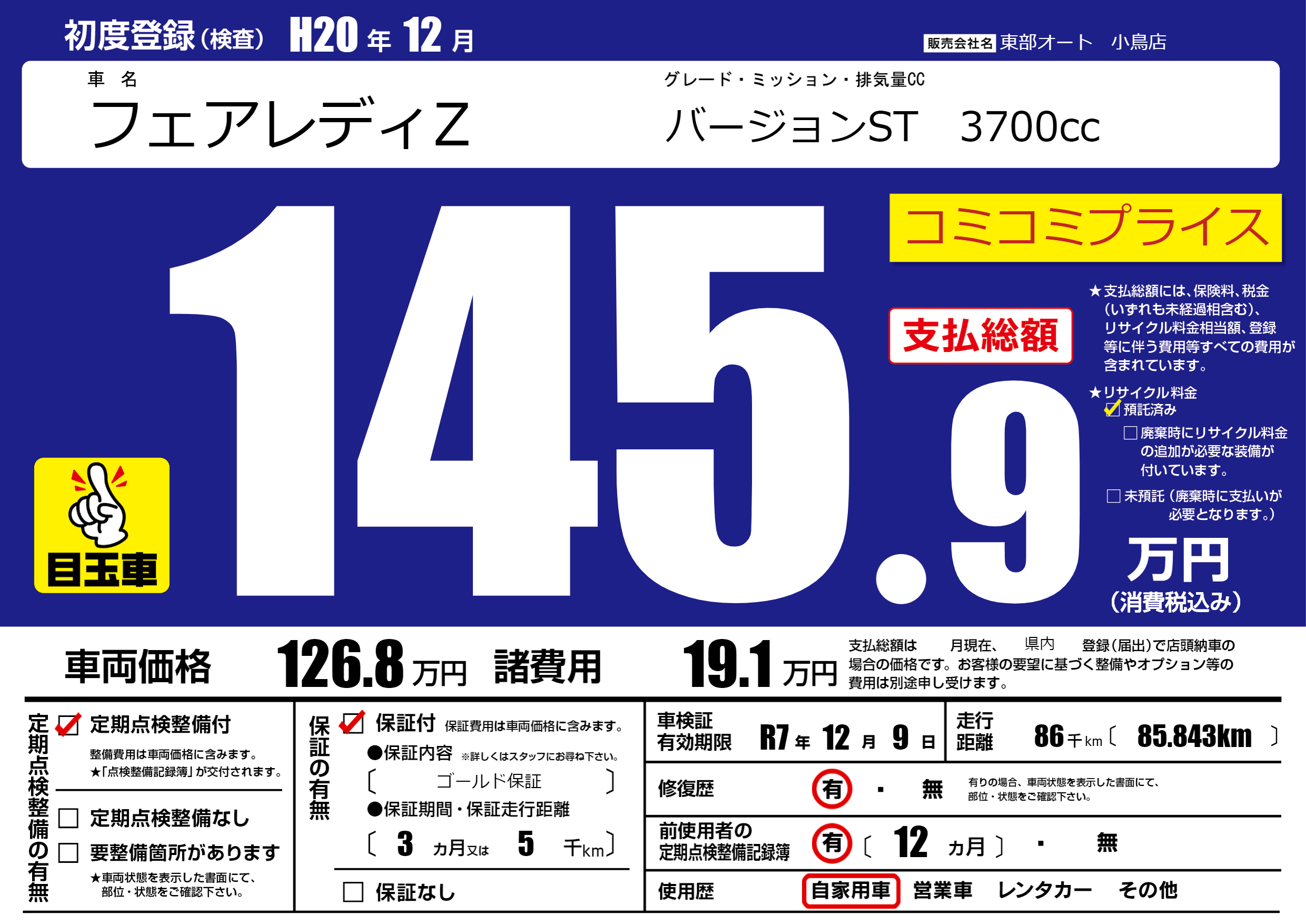 | 車名 | フェアレディZ | グレード ミッション 排気量 |