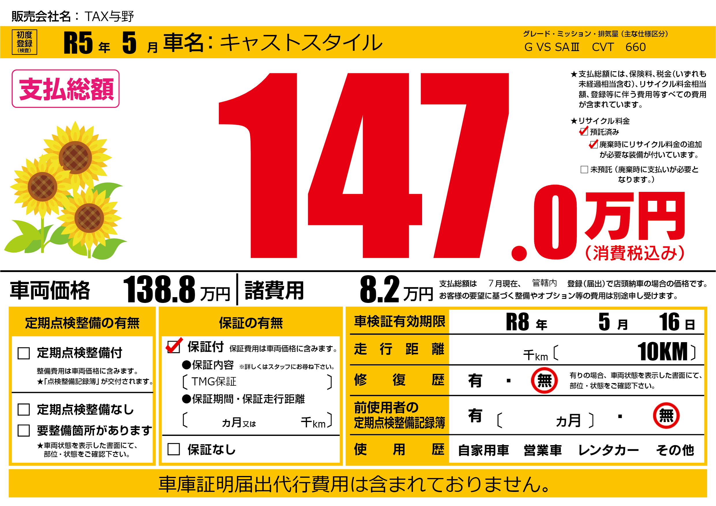 | 車名 | キャストスタイル | グレード ミッション 排気量 |