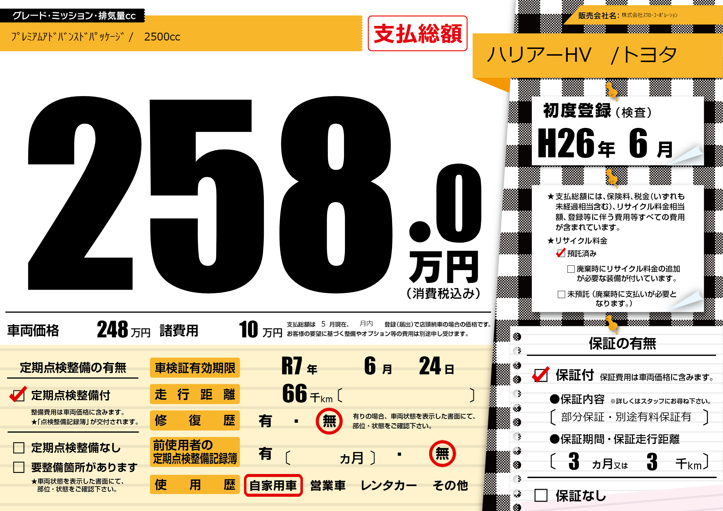 | 走行キロ | 6.6万km | 初年度登録 | H26年6月 |