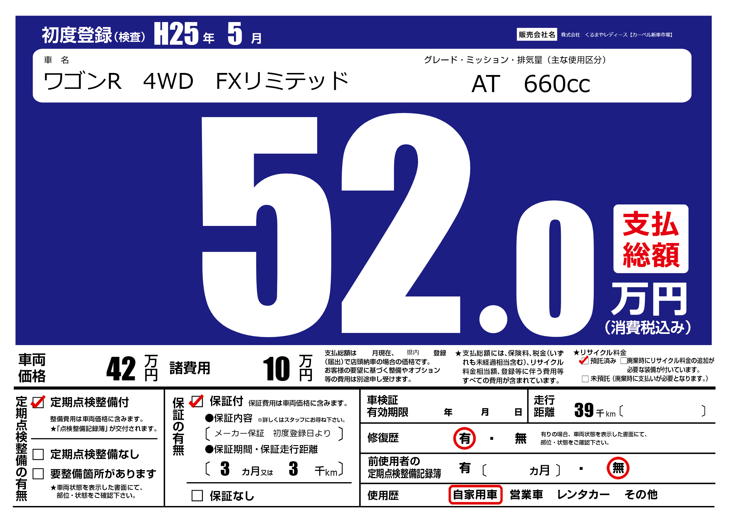 | 定期点検整備 | 定期点検整備あり | ||