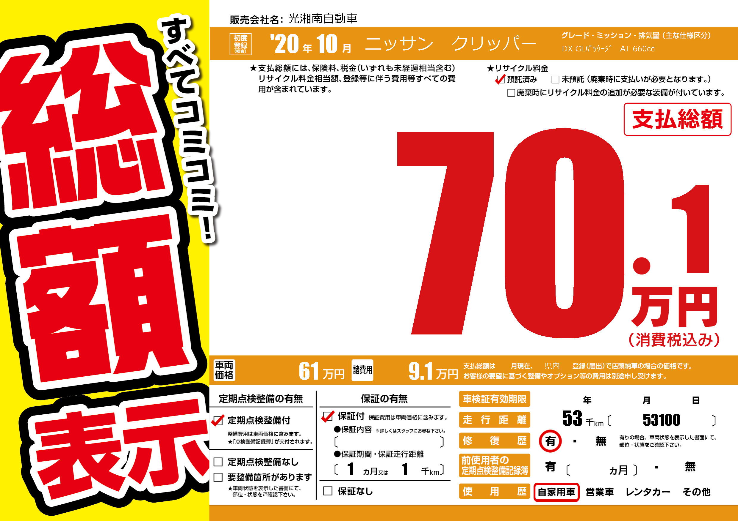 | 定期点検整備 | 定期点検整備あり | ||