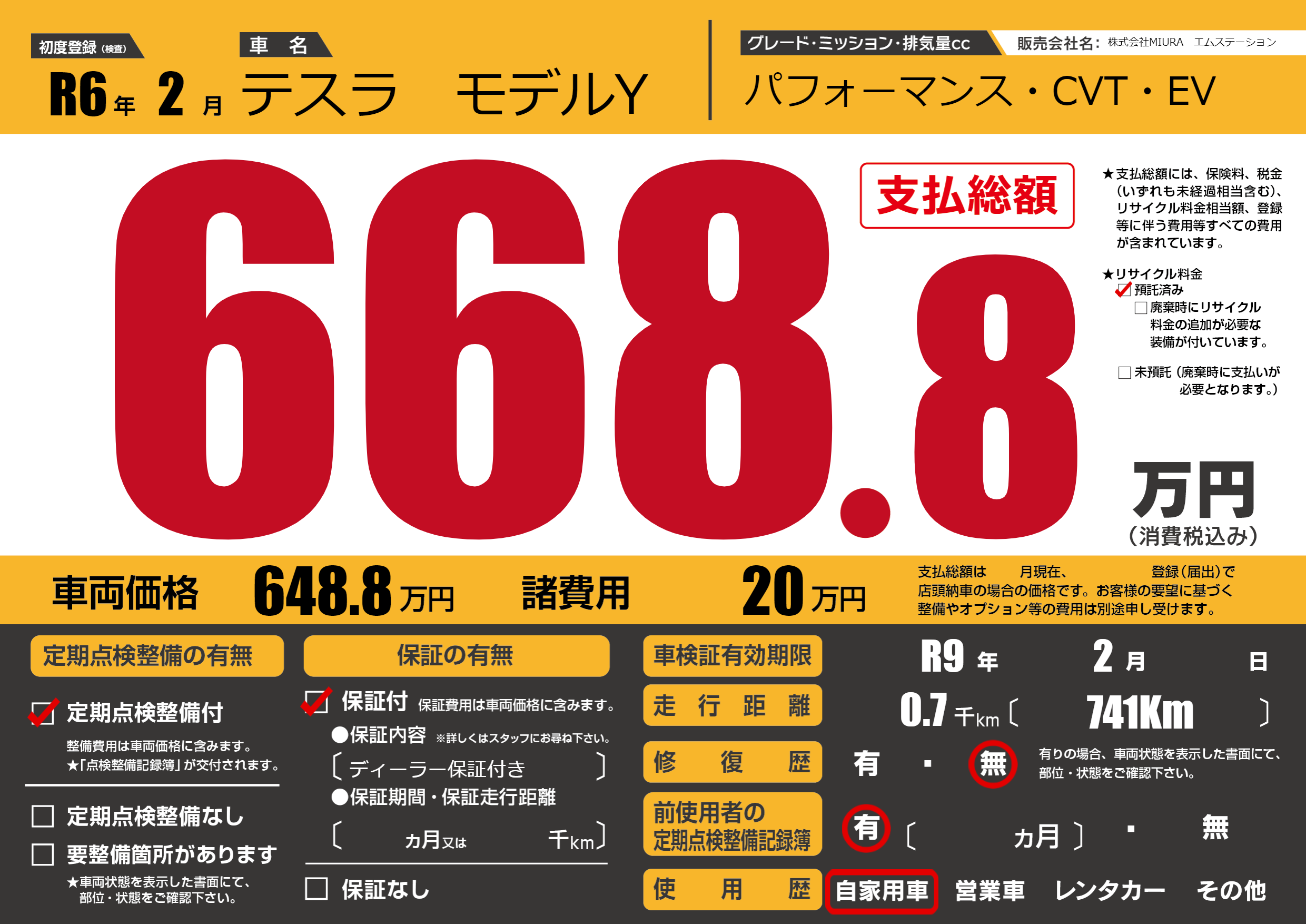 なし | 車検制限 | R9年2月---月 |