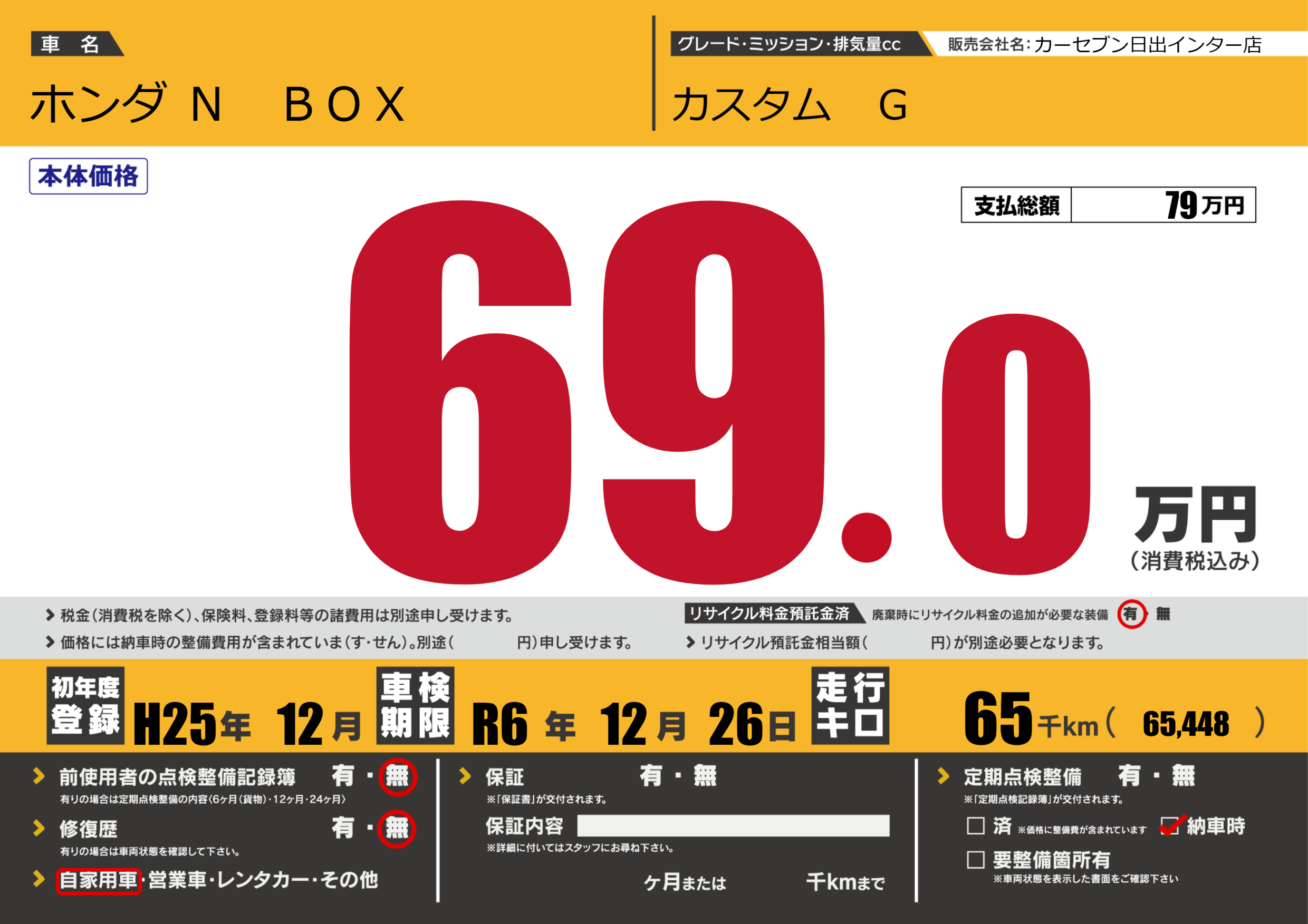 | 定期点検整備 | 納車時あり | ||