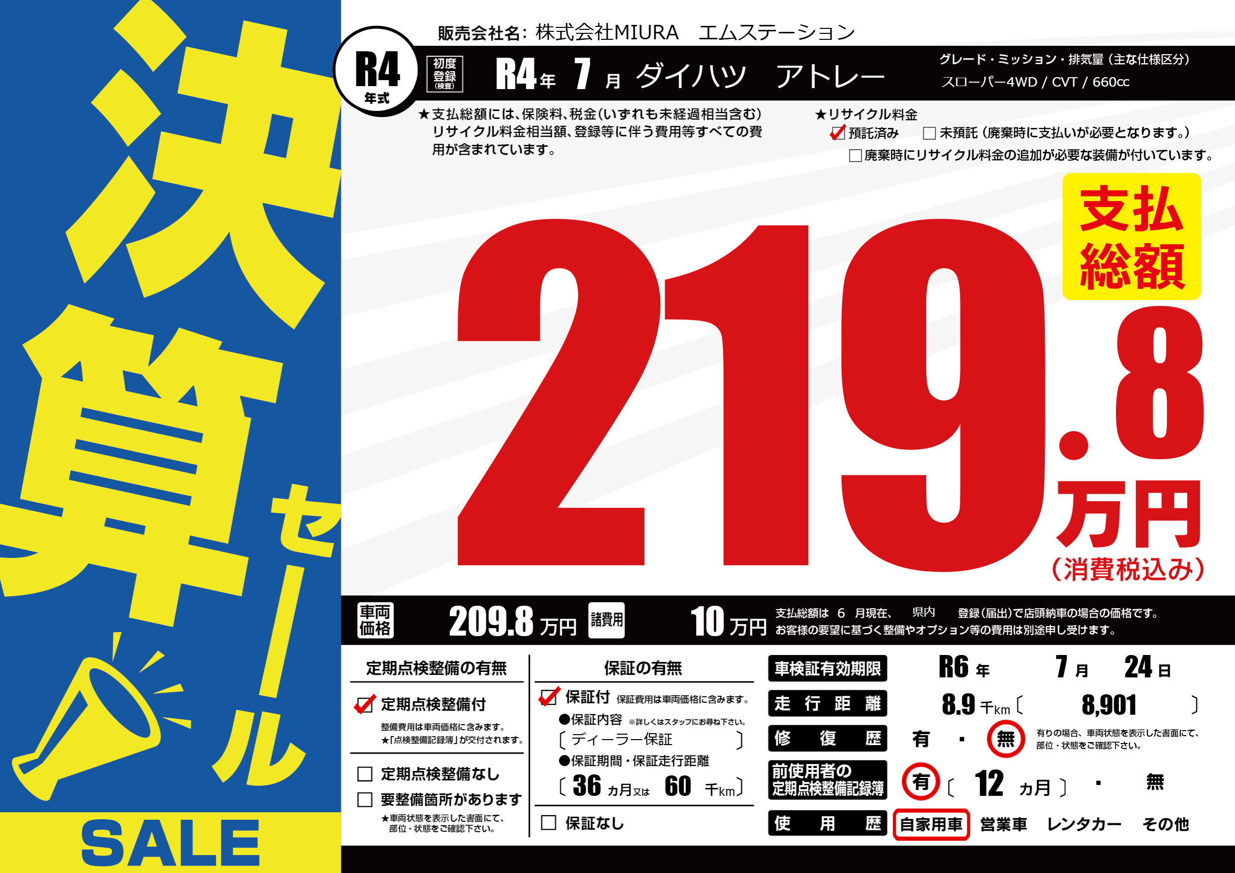 | 車検制限 | R6年 7月 24日 | ||
