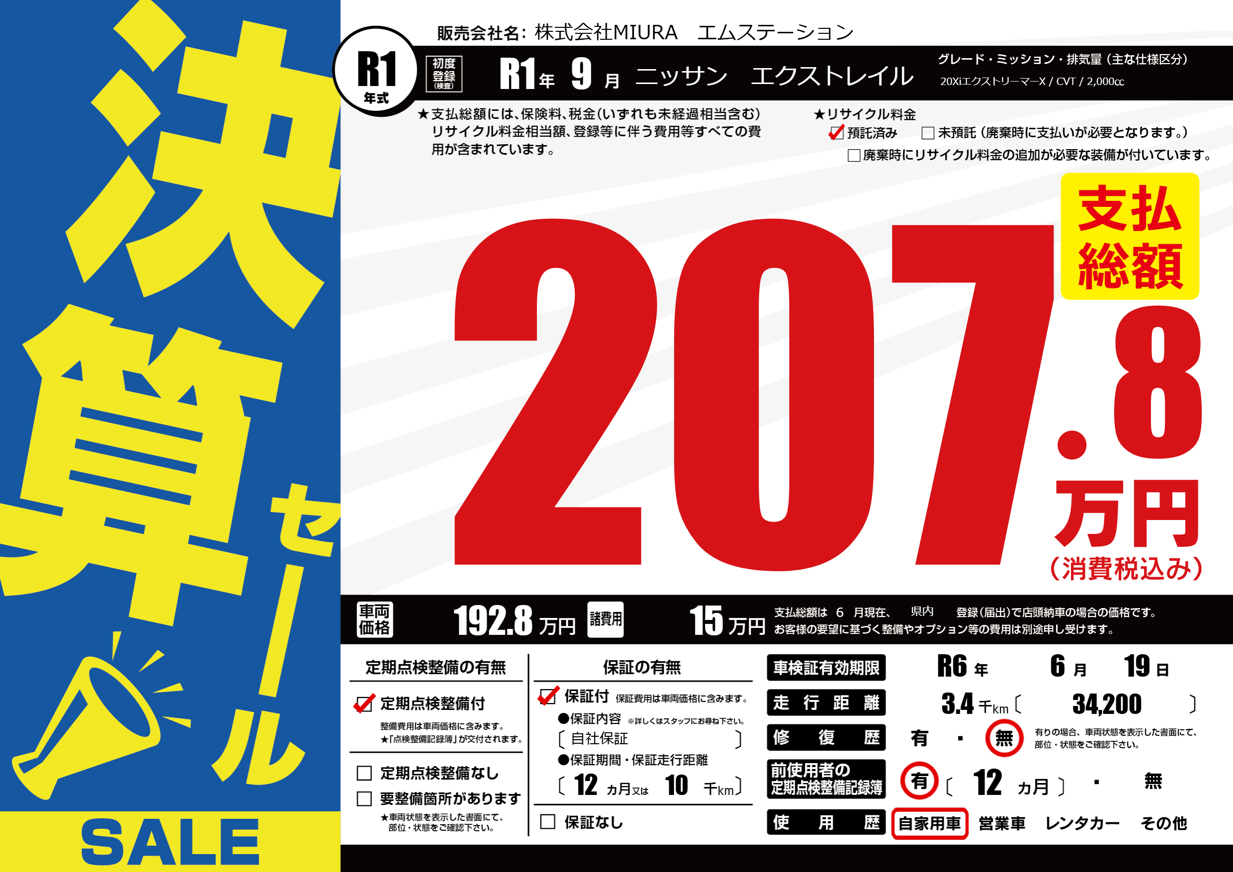なし | 車検制限 | R6年6月19月 |