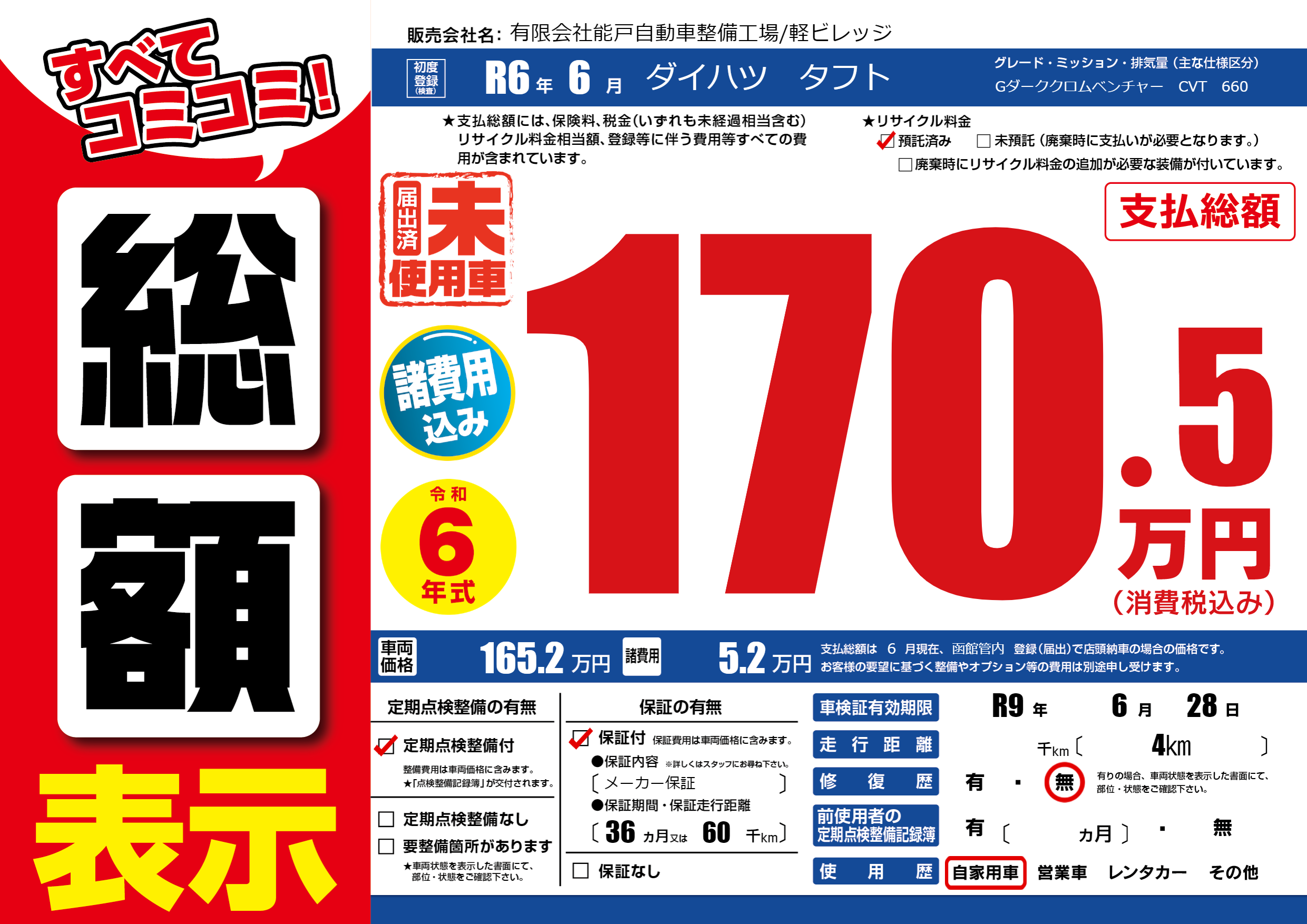 なし | 車検制限 | R9年6月28月 |
