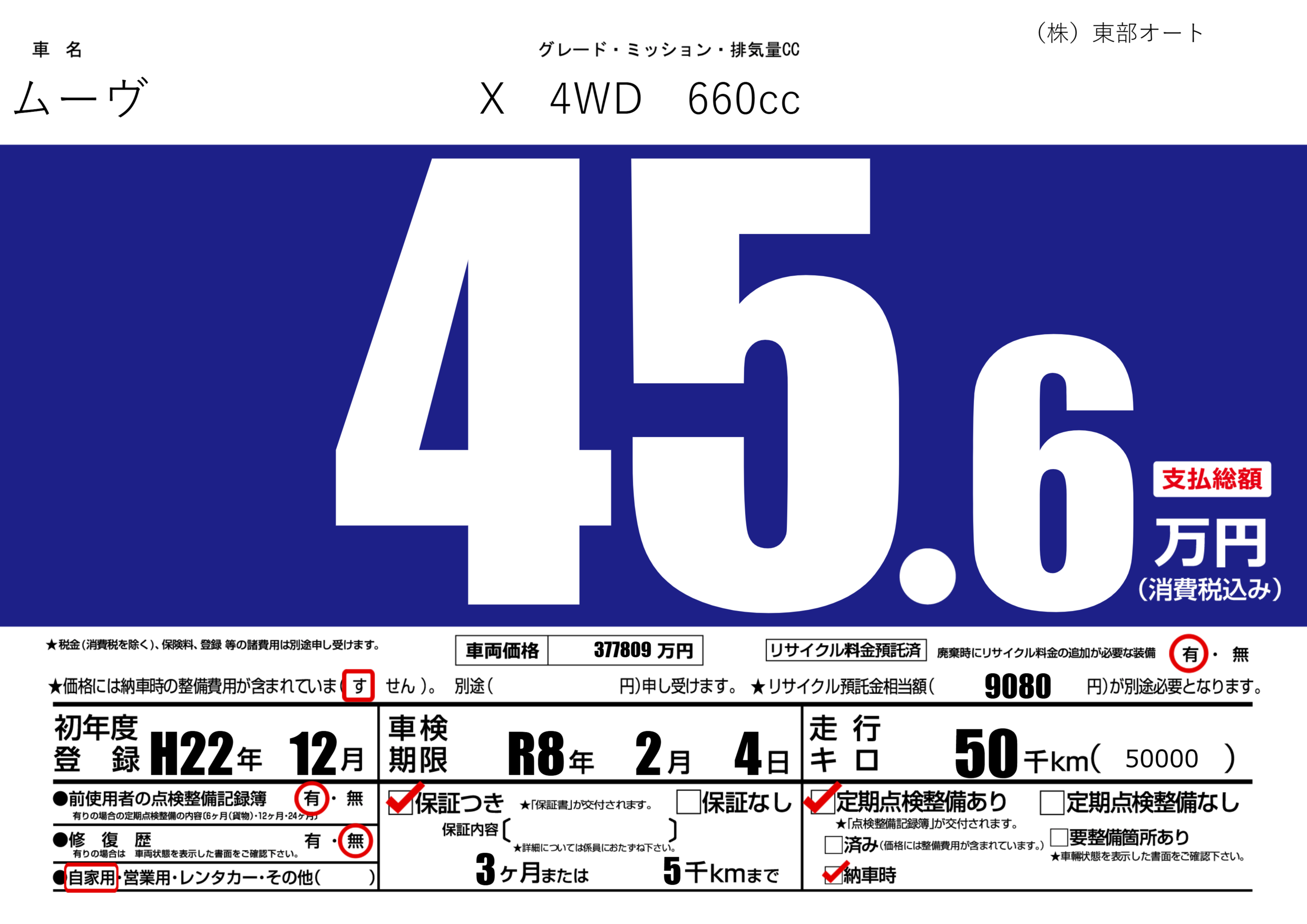 | 走行キロ | 5万km | ||