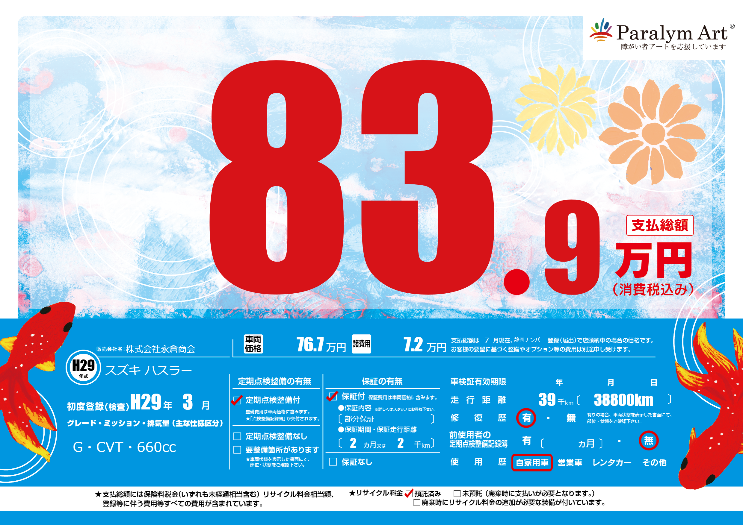 | 車名 | スズキ ハスラー | グレード ミッション 排気量 |