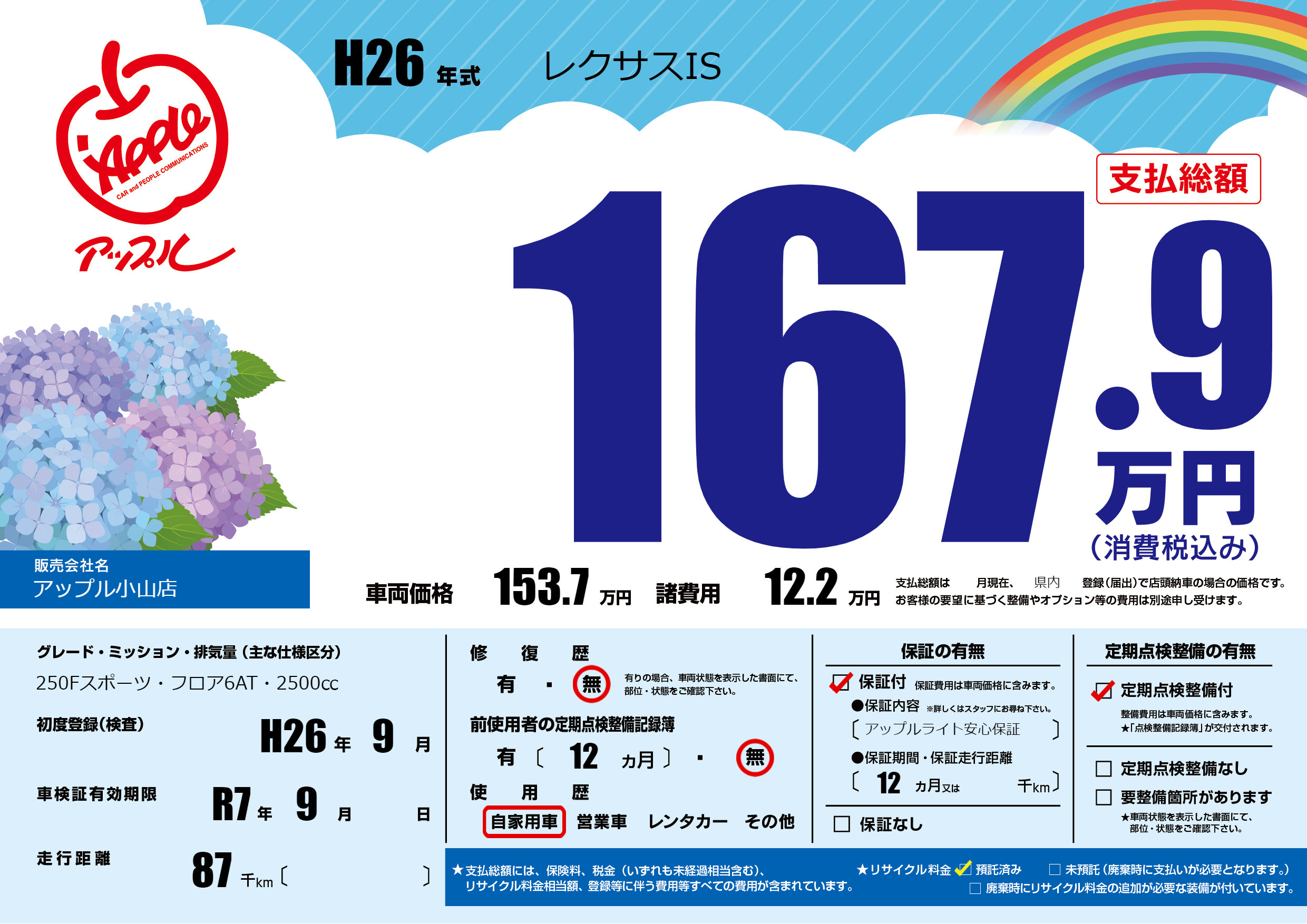 | 車名 | レクサスIS | グレード ミッション 排気量 |
