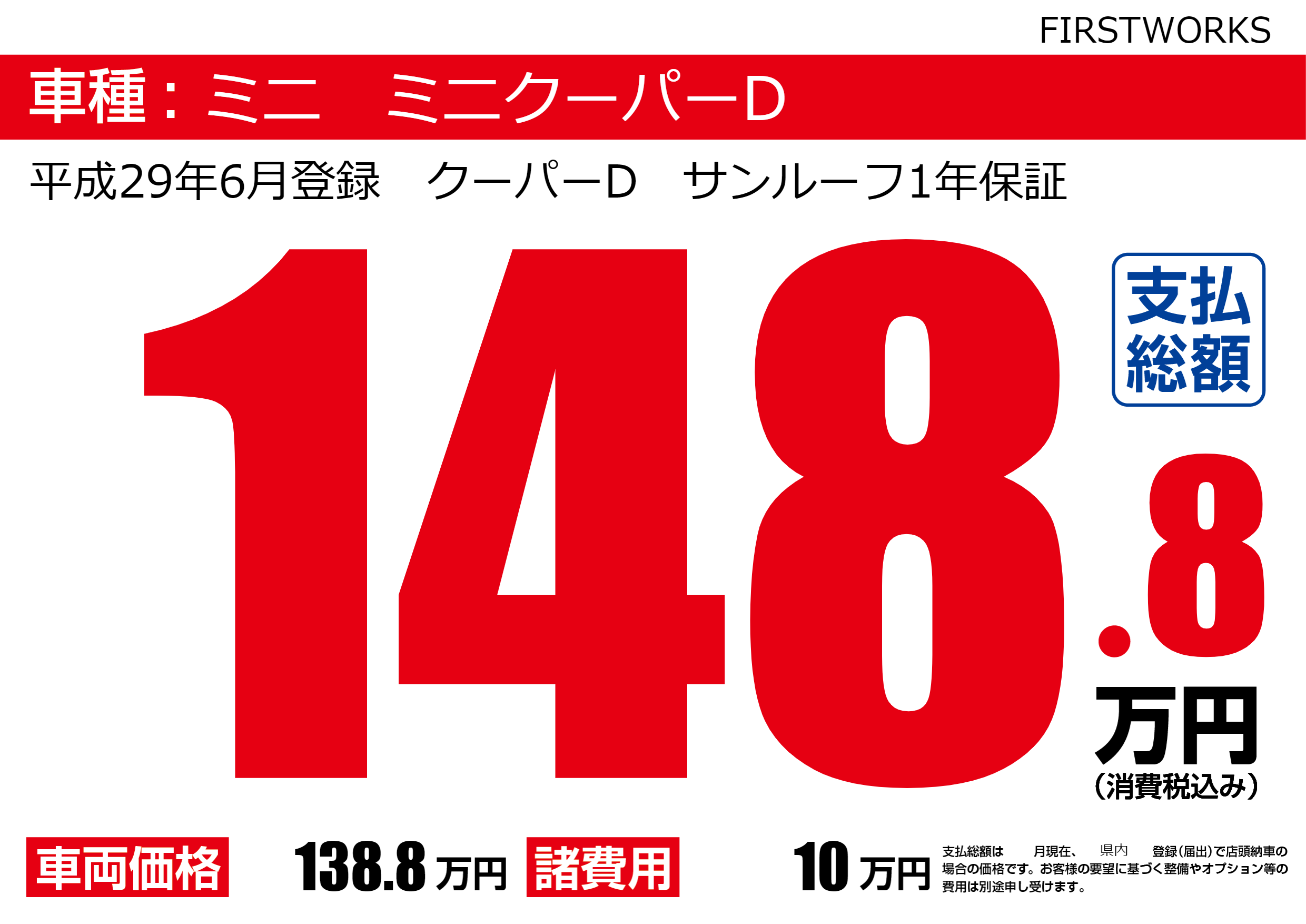 平成29年6月登録 クーパーD サンルーフ1年保証 |