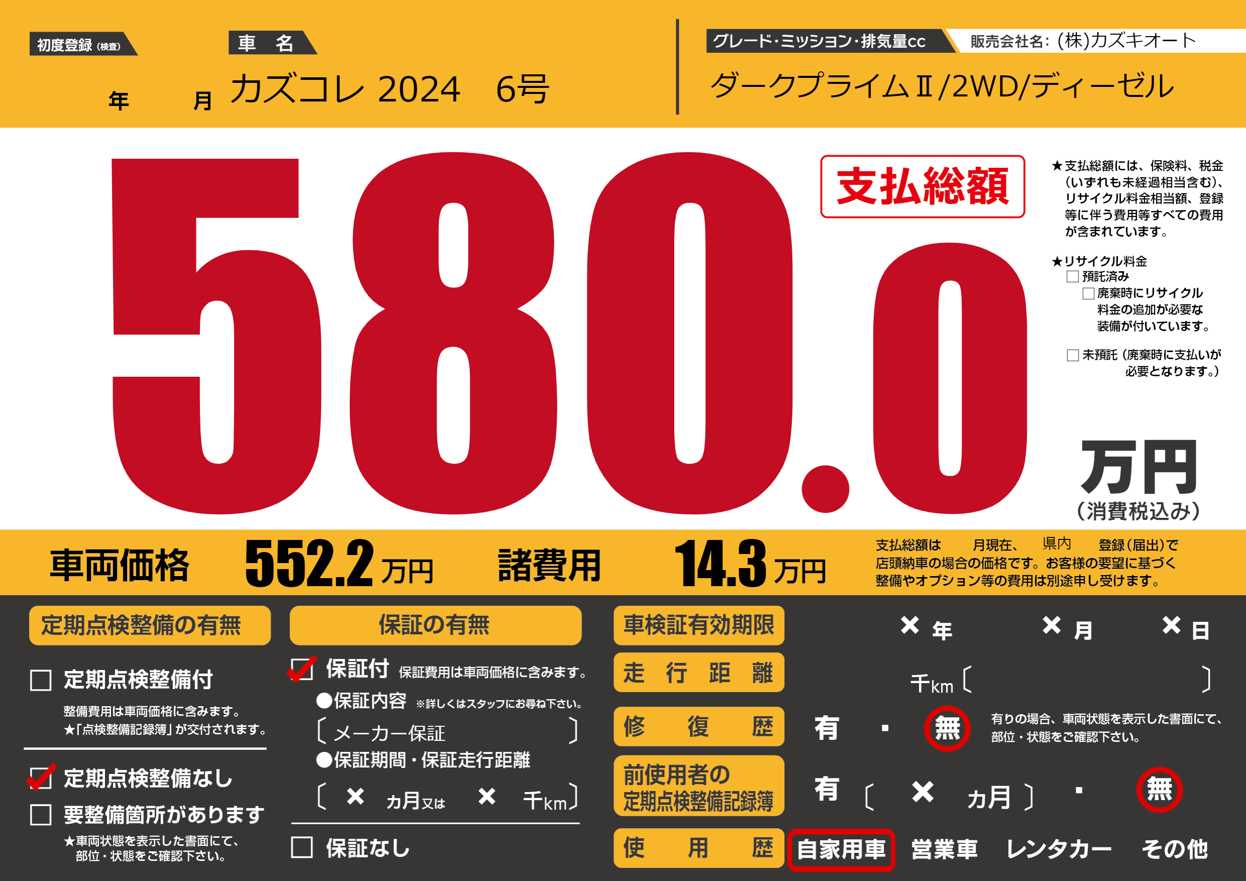 保証付き 保証内容(メーカー保証) ×ヶ月または×千km |