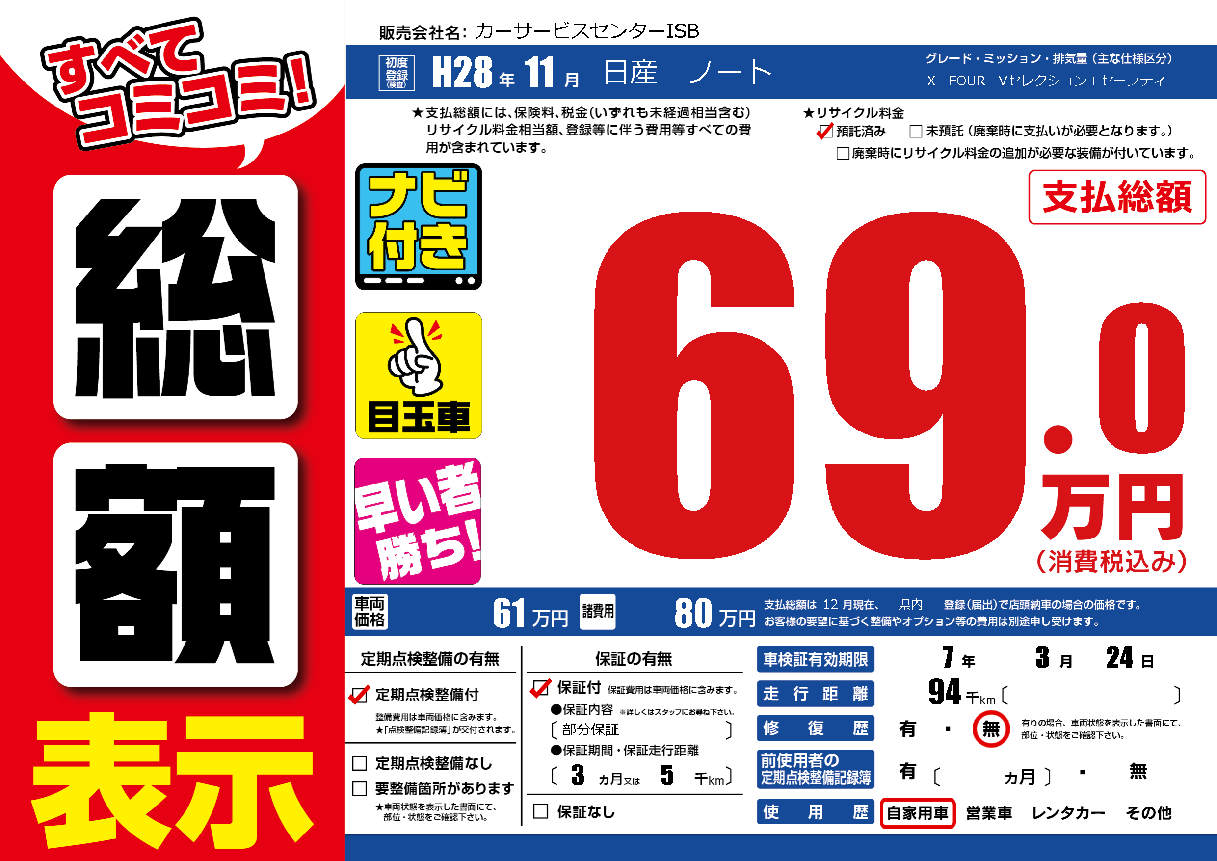 なし | 車検制限 | 7年3月24月 |