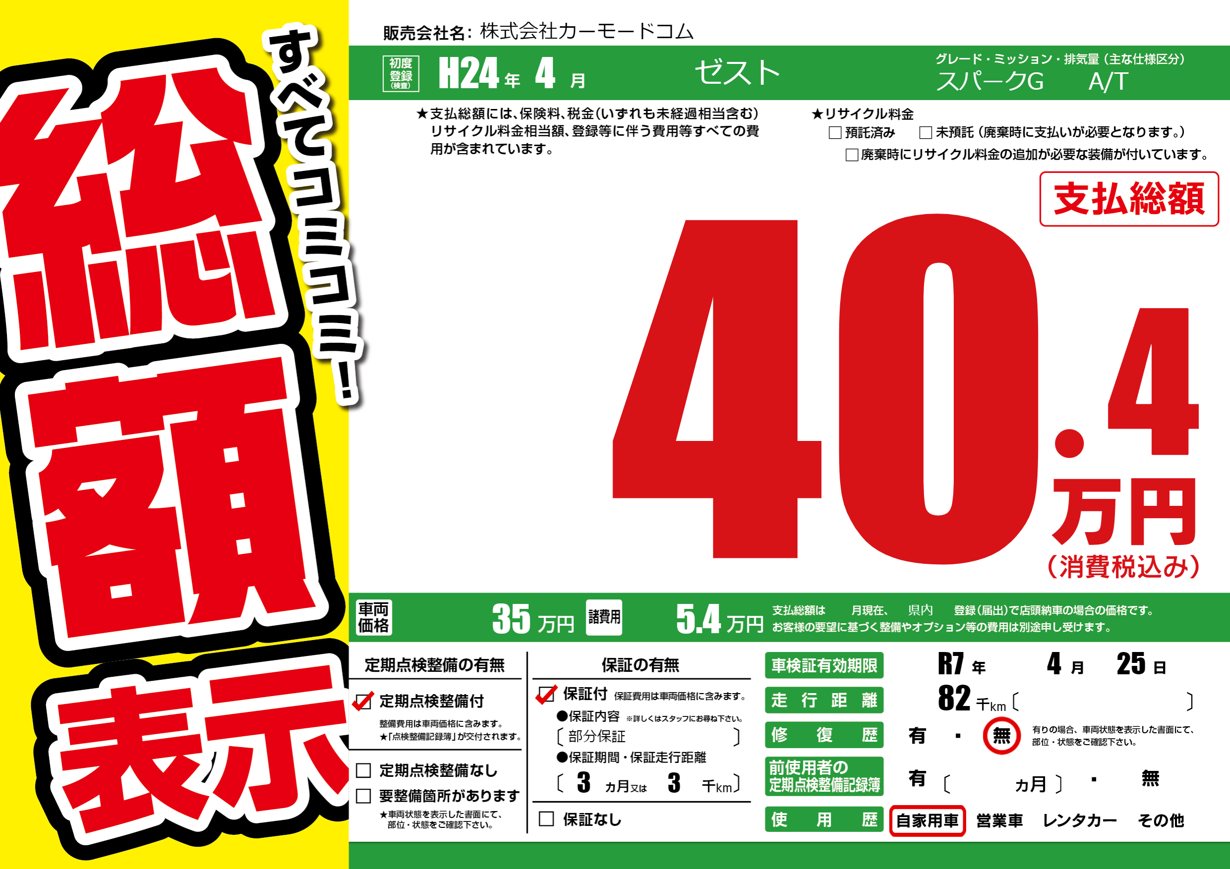 なし | 車検制限 | R7年4月25月 |