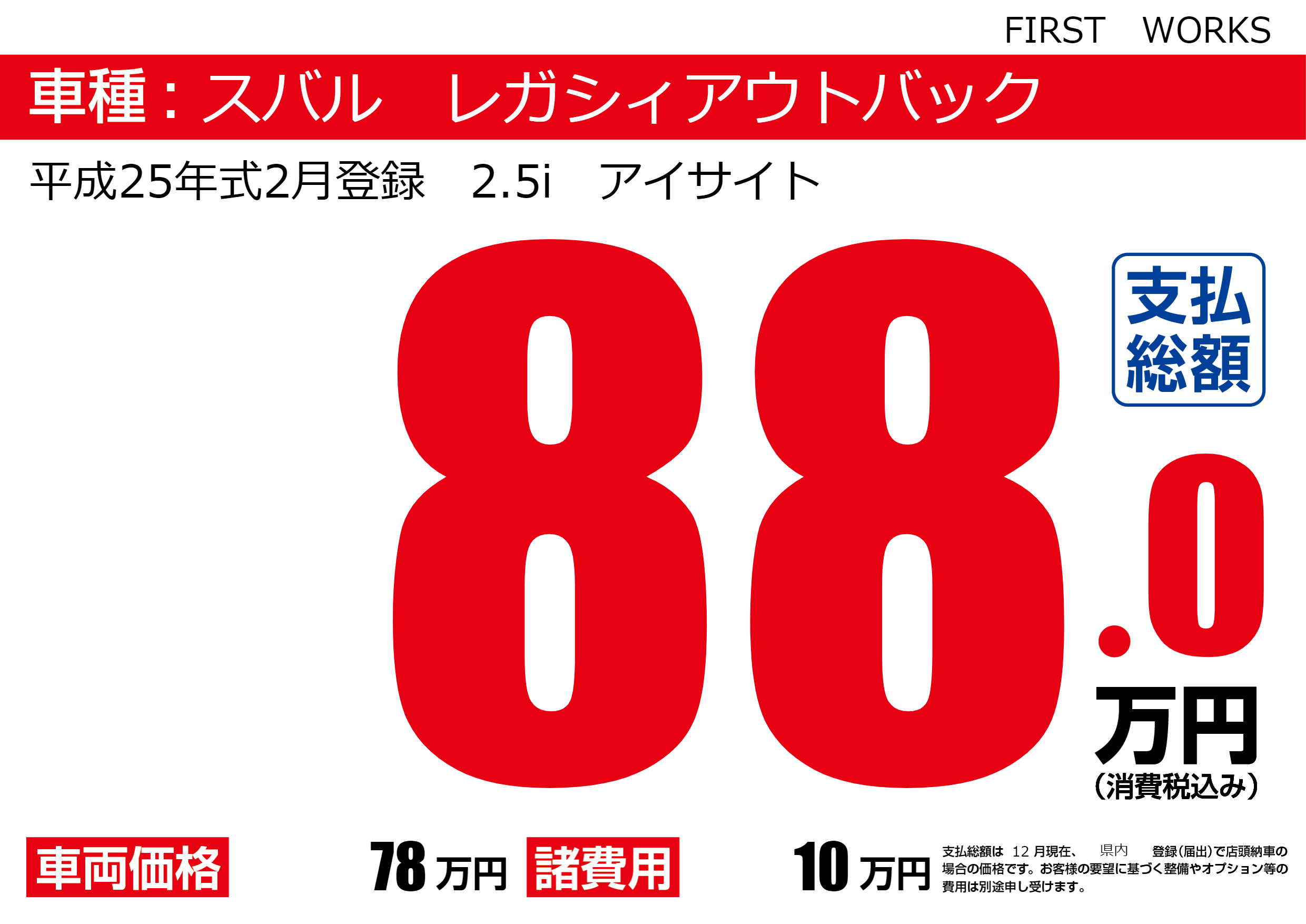 | 車名 | スバル レガシィアウトバック | グレード ミッション 排気量 |