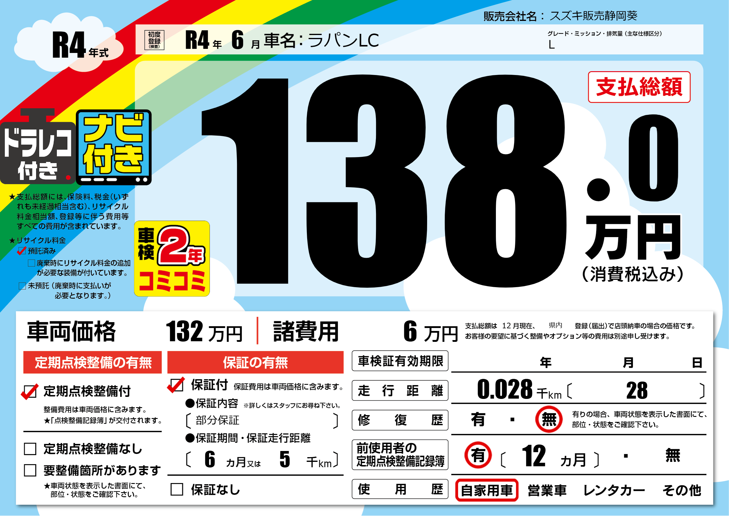 | 車名 | ラパンLC | グレード ミッション 排気量 |