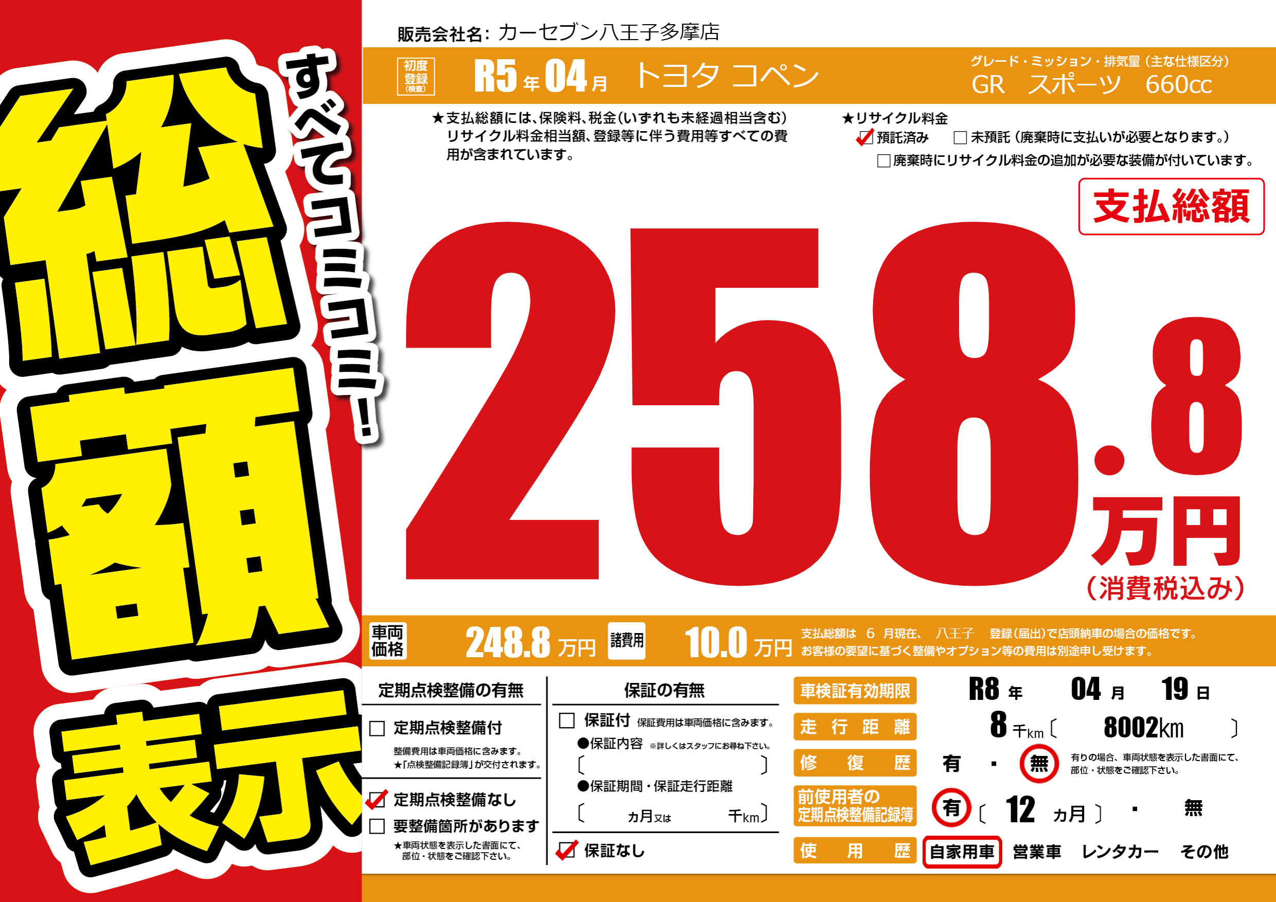 なし | 車検制限 | R8年04月19月 |