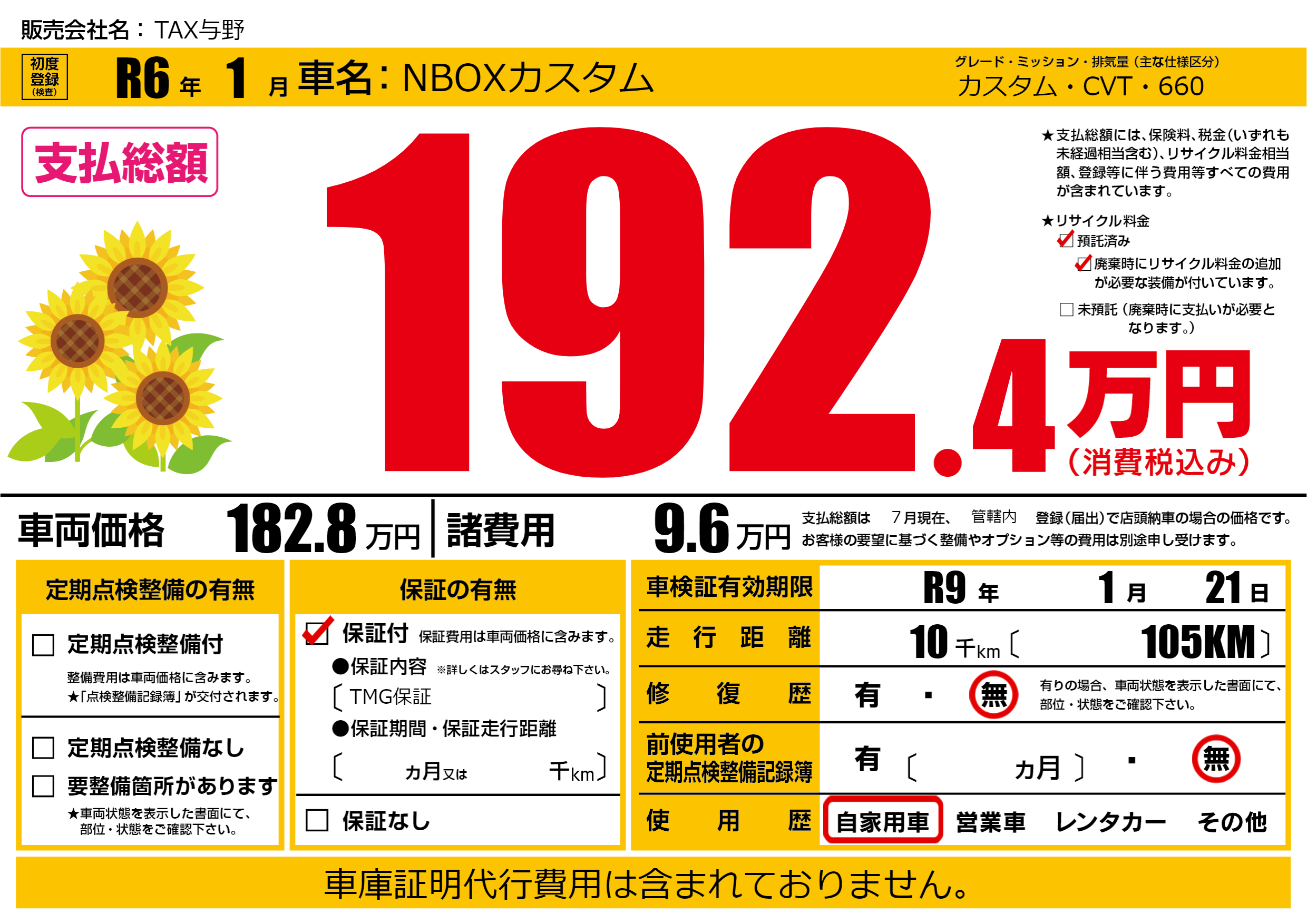 保証付き 保証内容(TMG保証) ---ヶ月または()千kmまで |