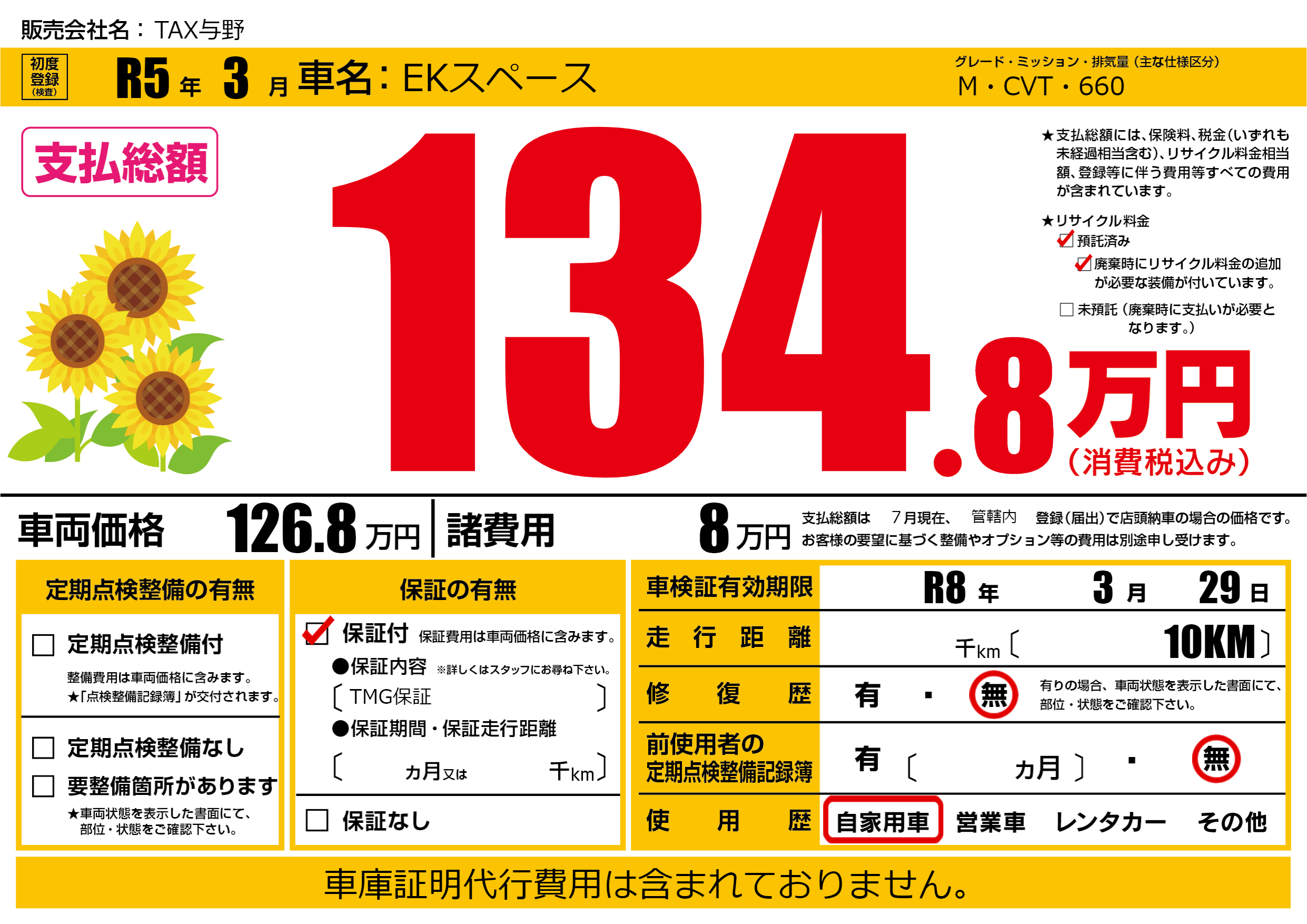 | 車名 | EKスペース | グレード ミッション 排気量 |
