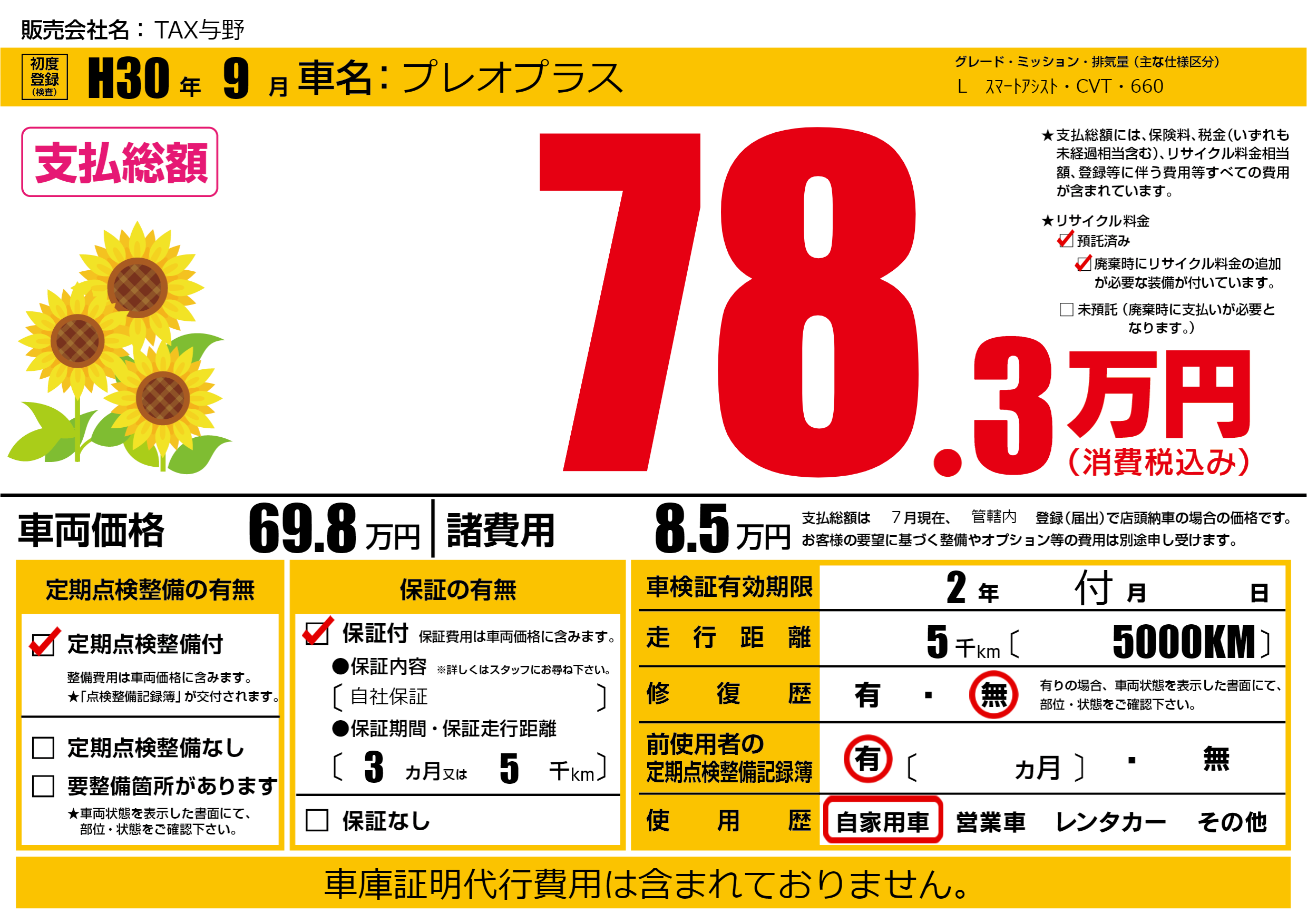 | 初年度登録 | H30年9月 | ||