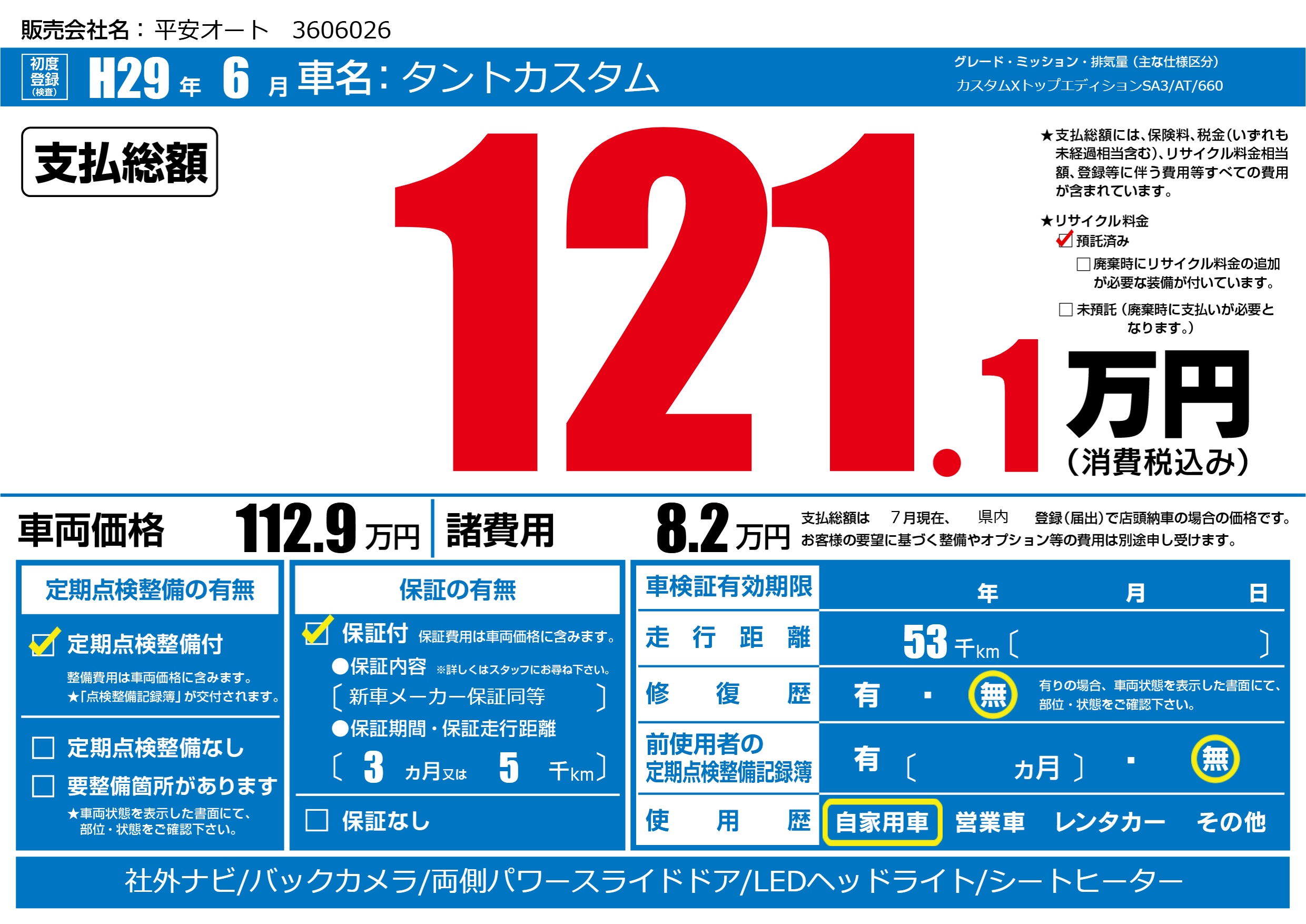 | 走行キロ | 5.3万km | 初年度登録 | H29年6月 |