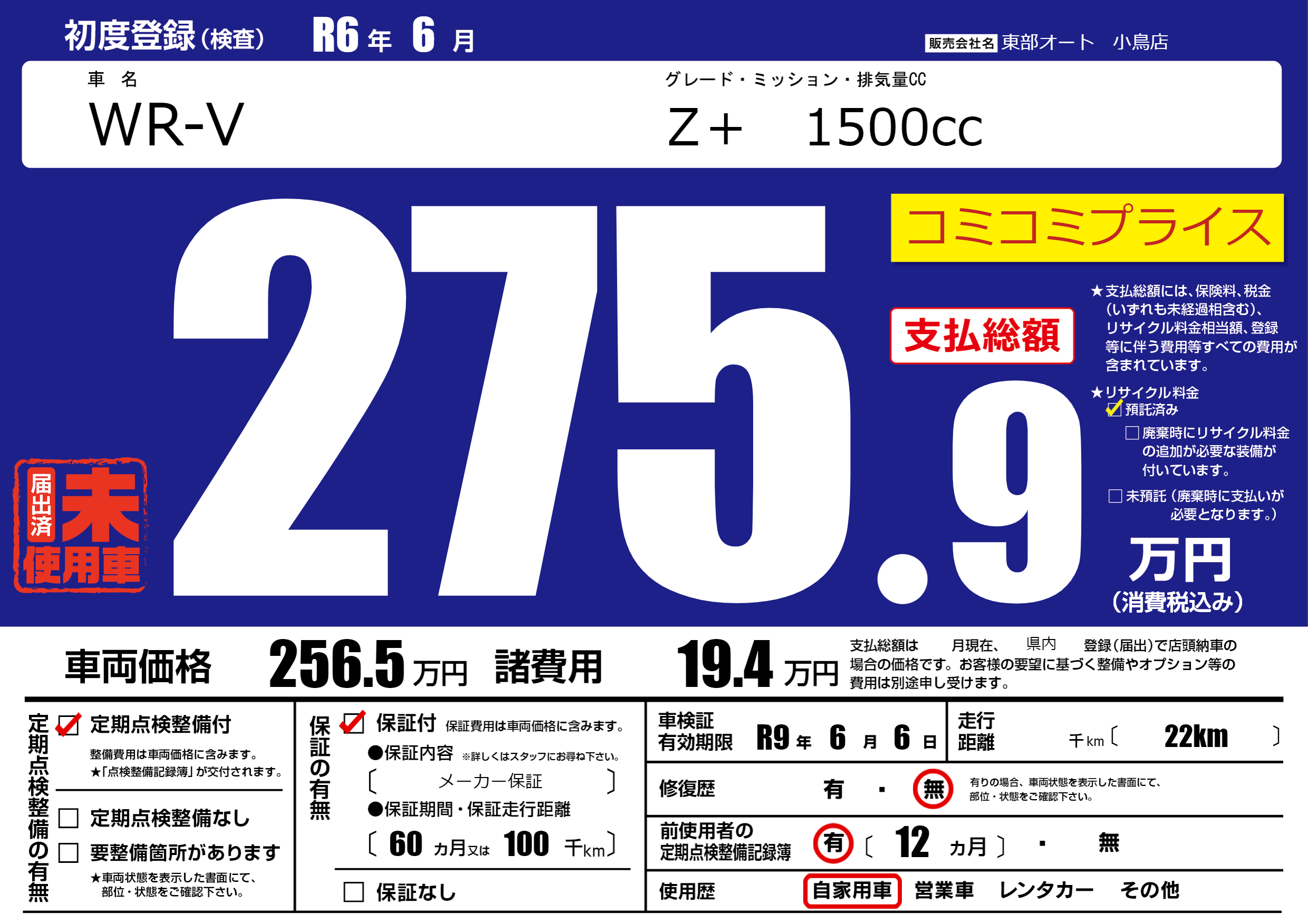 なし | 車検制限 | R9年6月6月 |