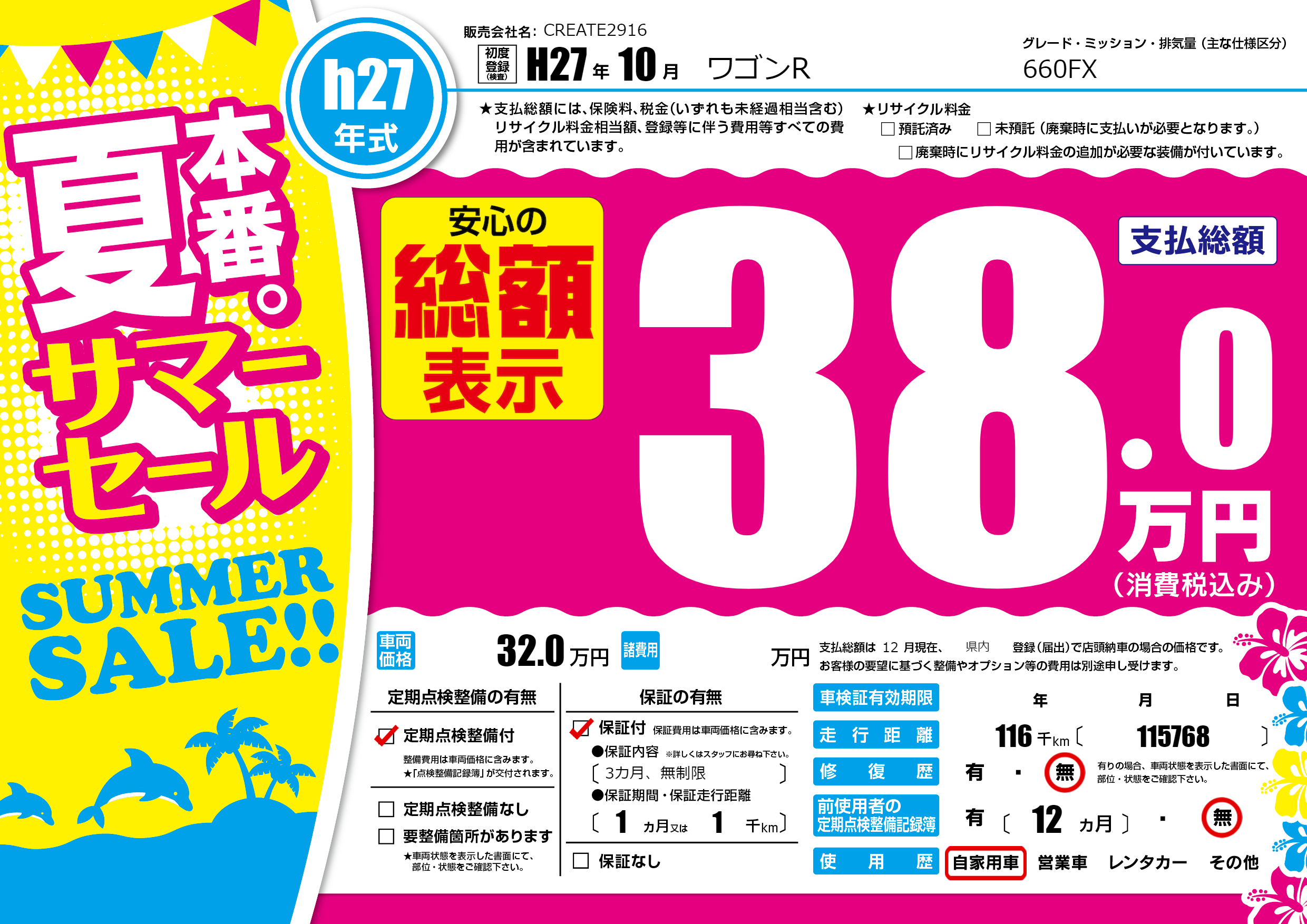 | 走行キロ | 11.6万km | 初年度登録 | H27年10月 |