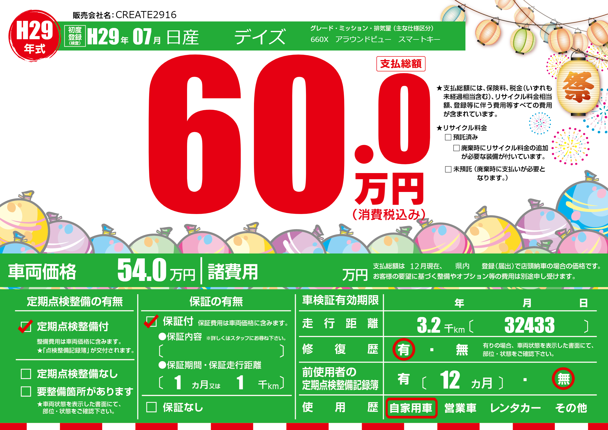 定期点検整備 | 定期点検整備あり |