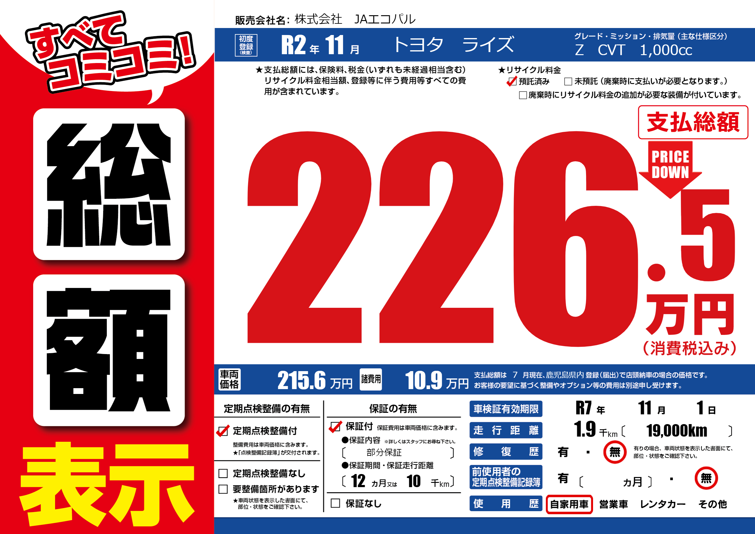 | 車検制限 | R7年 11月 1日 | ||