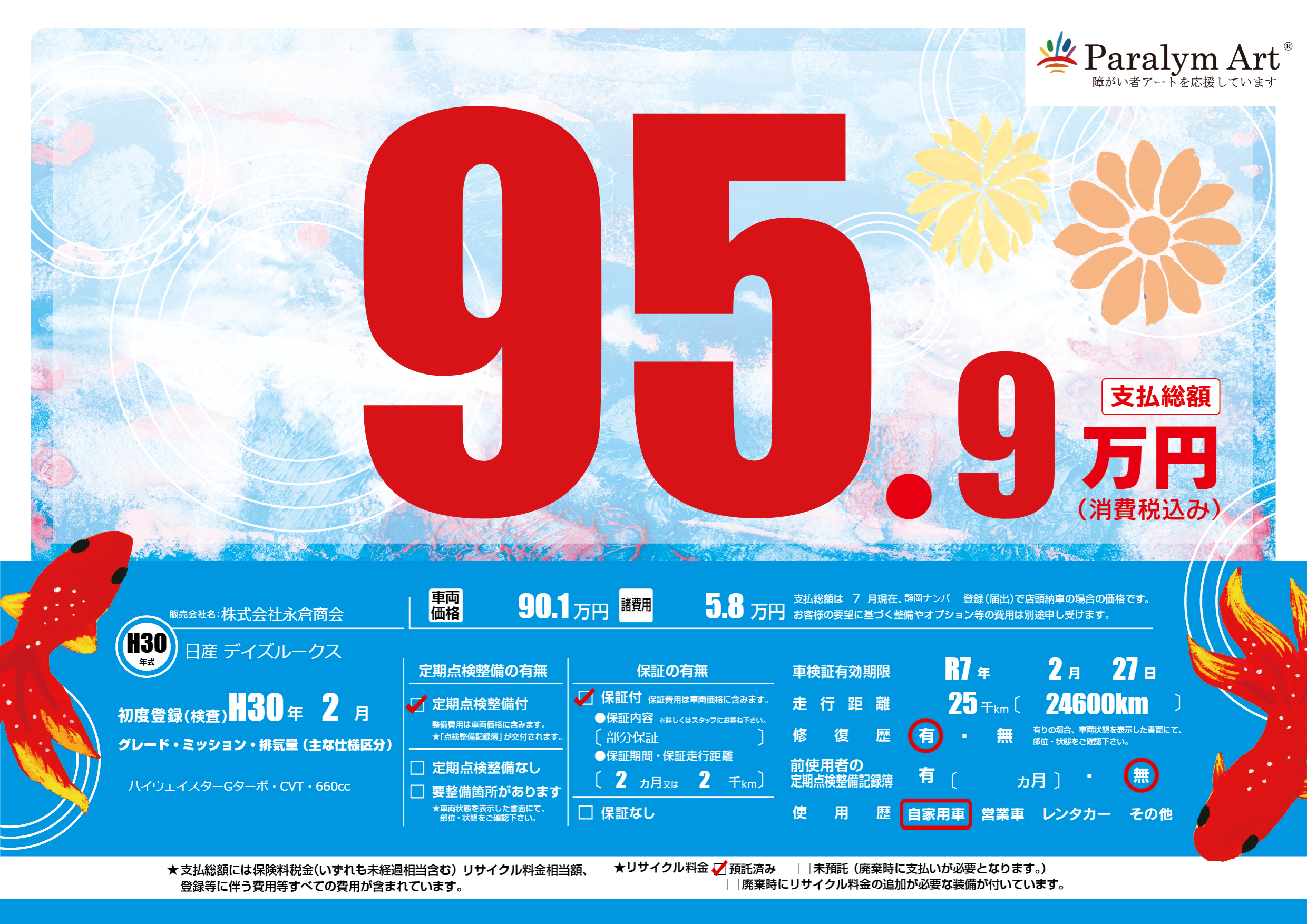 | 車名 | 日産 デイズルークス | グレード ミッション 排気量 |