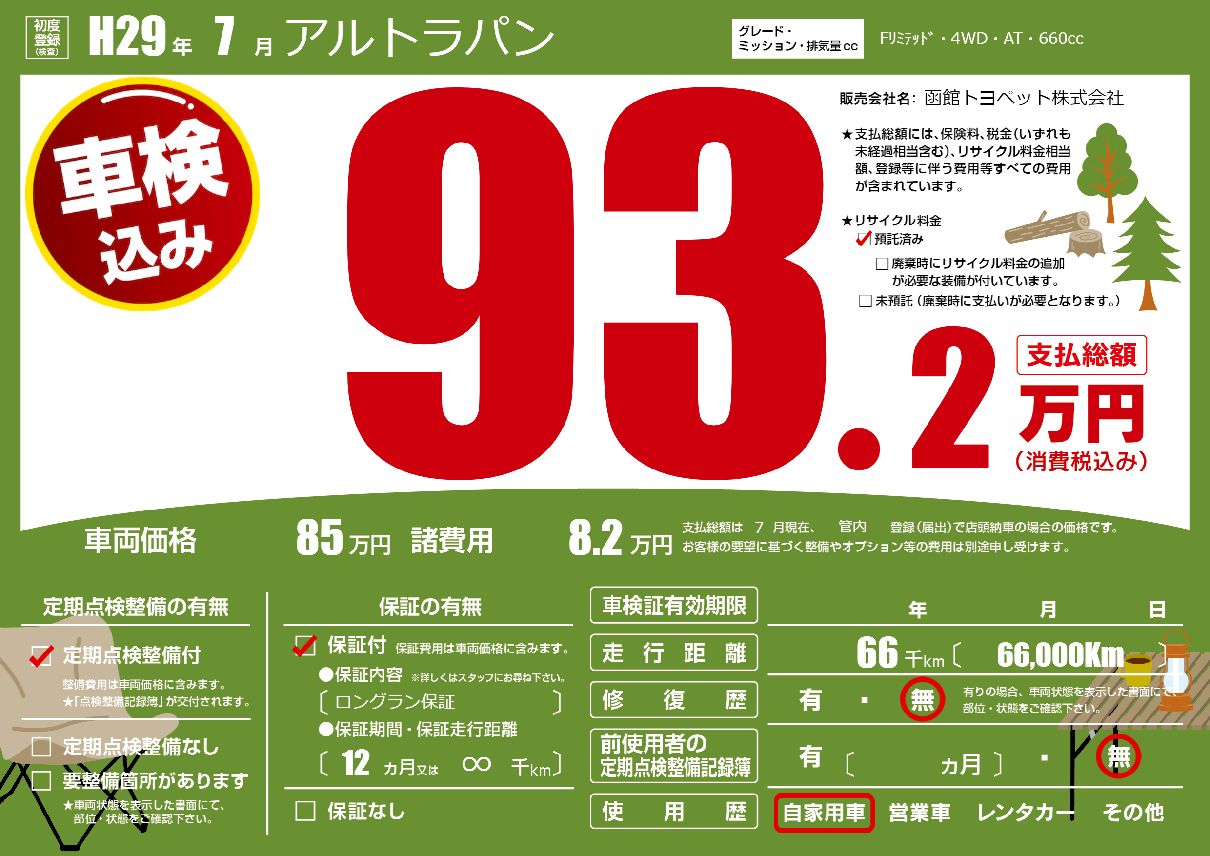 | 定期点検整備 | 定期点検整備あり | ||