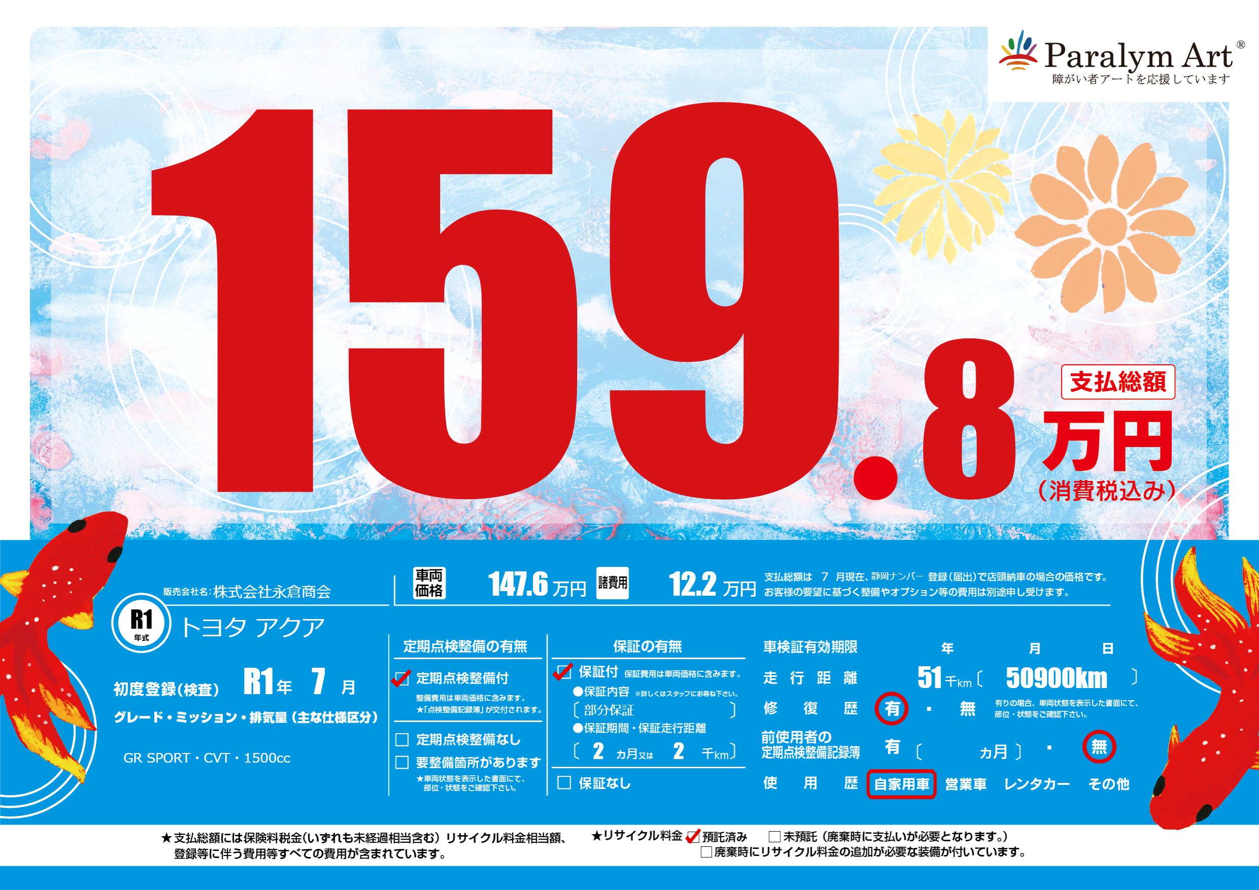 | 車名 | トヨタ アクア | グレード ミッション 排気量 |
