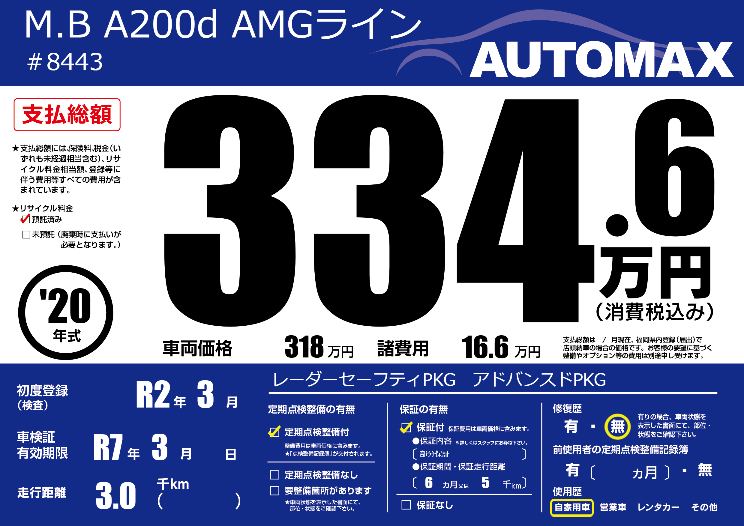 | 車名 | M.B A200d AMGライン | グレード ミッション 排気量 |