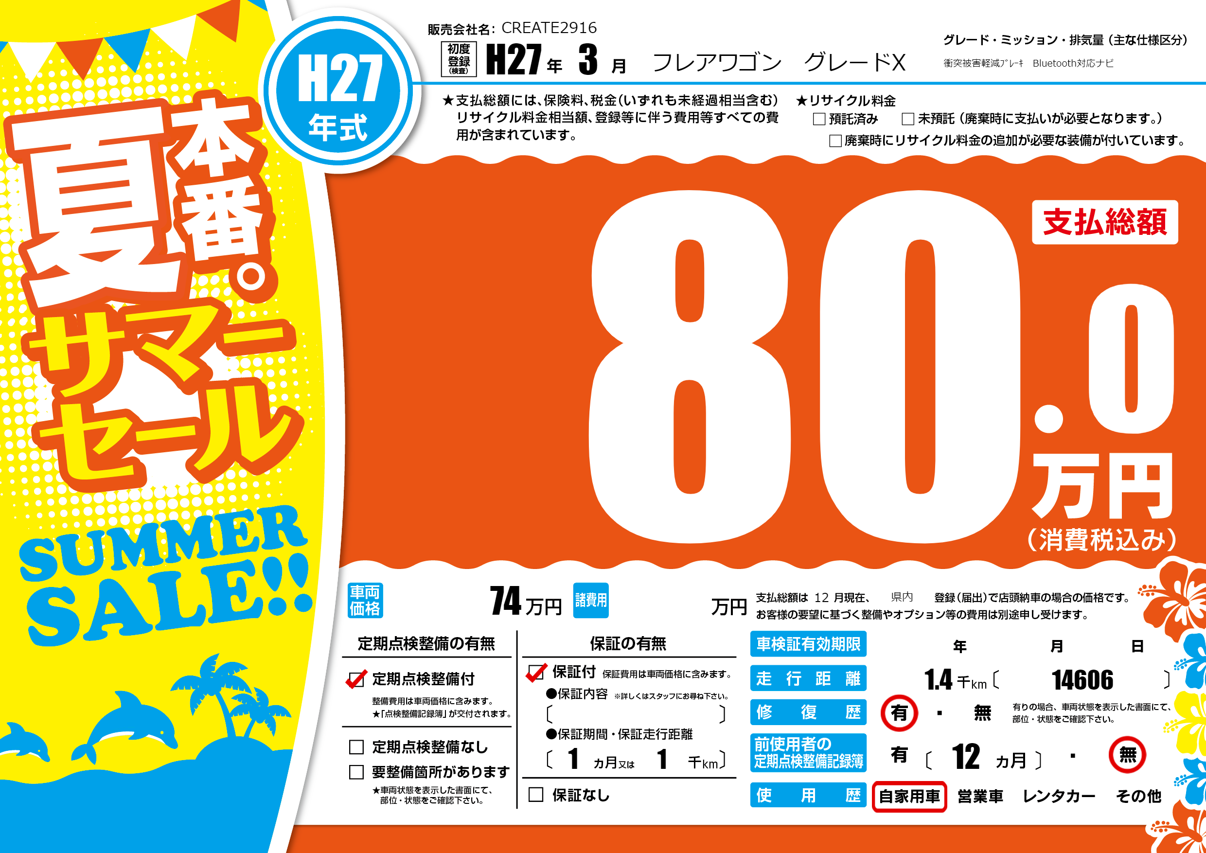 初年度登録 H27年3月