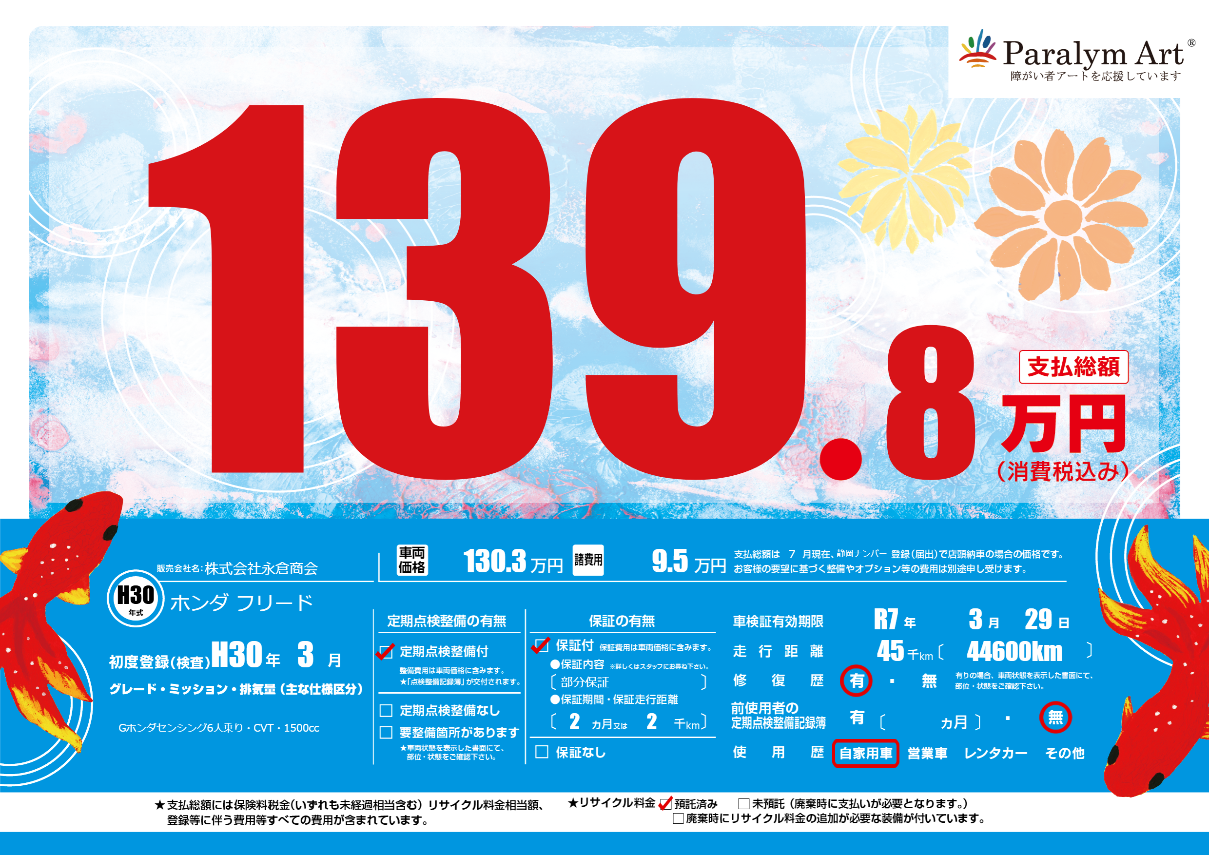 | 車名 | ホンダ フリード | グレード ミッション 排気量 |