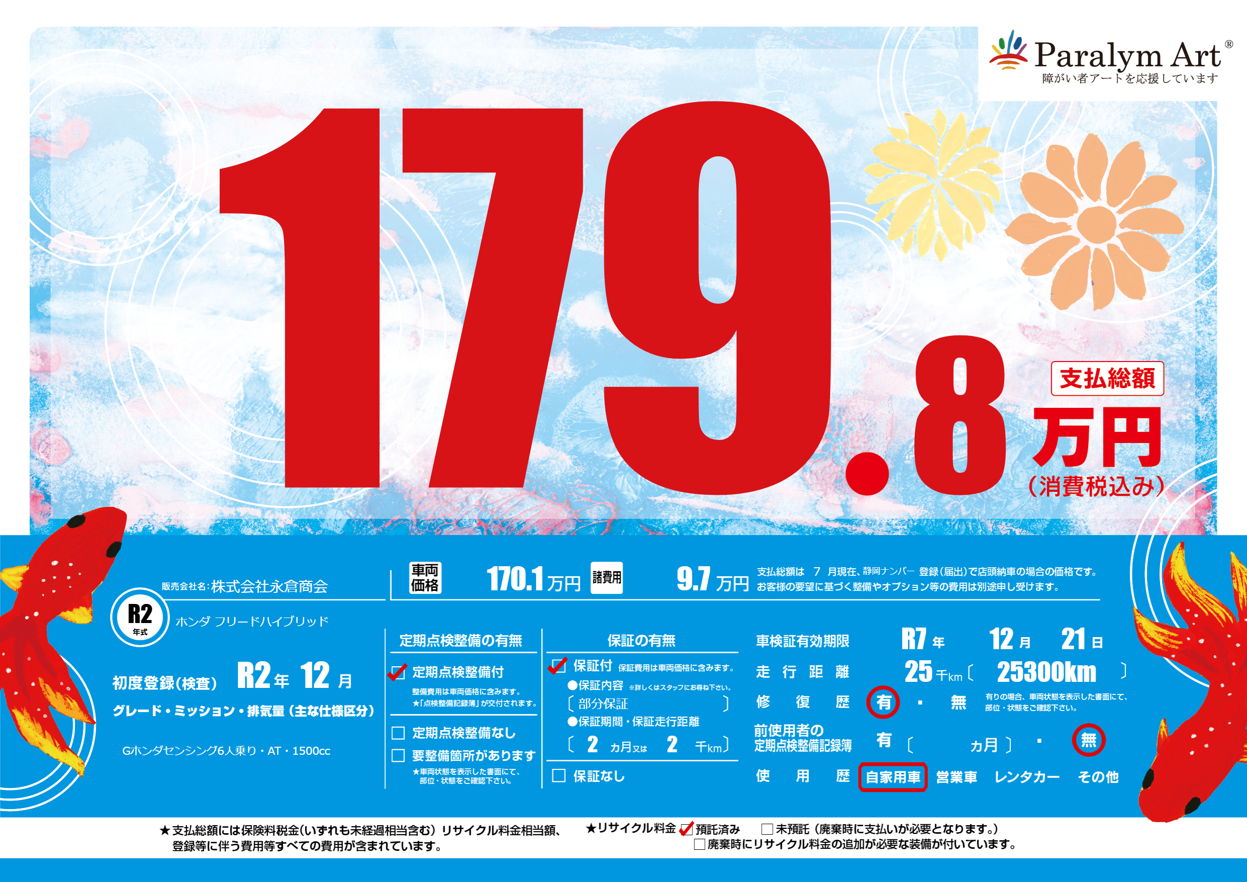| 車名 | ホンダ フリードハイブリッド | グレード ミッション 排気量 |