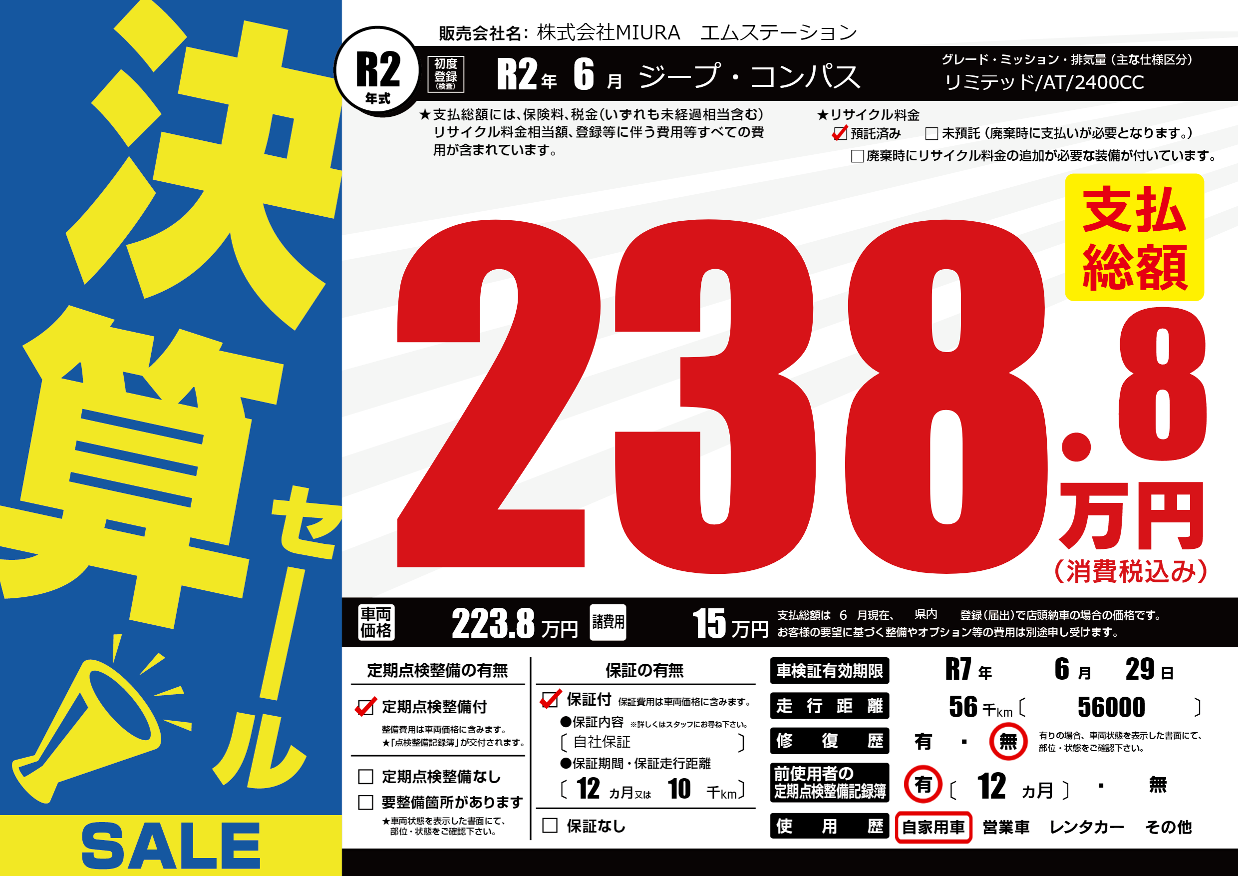 | 車検制限 | R7年 6月 29日 | ||